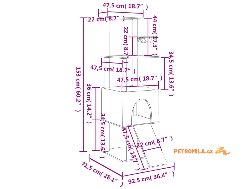 - Všestranná věž pro kočky: Víceúrovňový nábytek pro kočky je navržen s domečkem, žebříkem, košem a plošinami, takže poskytuje kočkám ideální místo pro šplhání, sezení, škrábání, schovávání se a také k odpočinku.