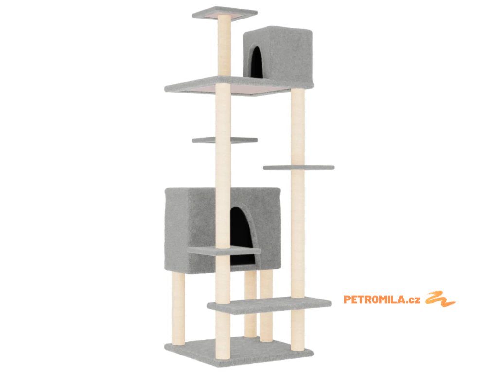 Škrabadlo pro kočky se sisalovými sloupky světle šedé 154 cm