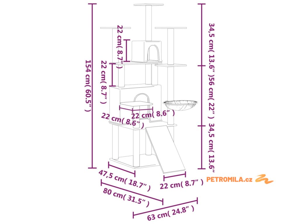 - Všestranná věž pro kočky: Víceúrovňový nábytek pro kočky je navržen se 2 domečky, 1 hamakou, 1 žebříkem a plošinami, které poskytují kočkám ideální místo pro šplhání, sezení, škrábání, schovávání se a také k odpočinku.