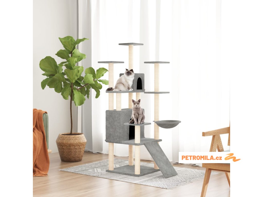 Škrabadlo pro kočky se sisalovými sloupky světle šedé 154 cm