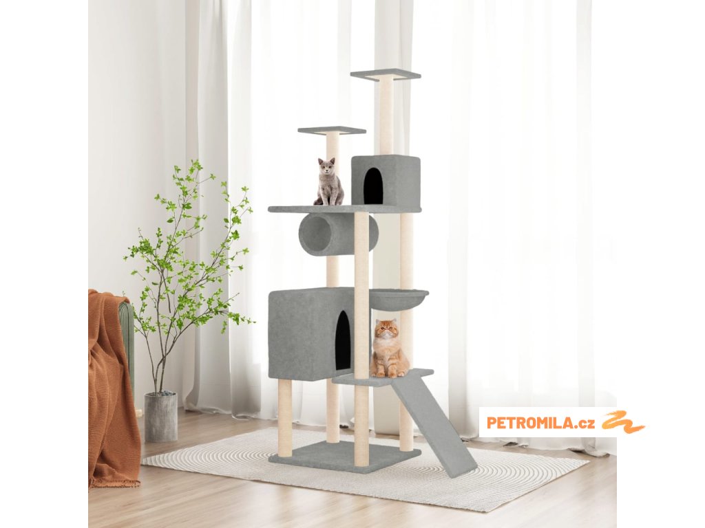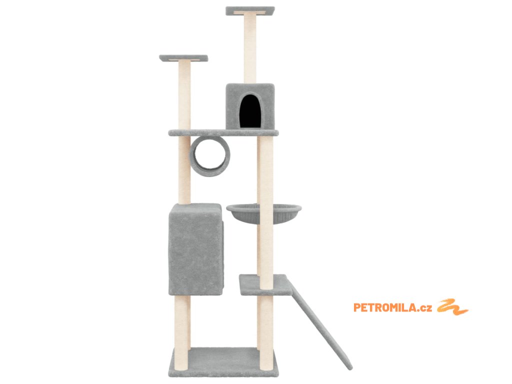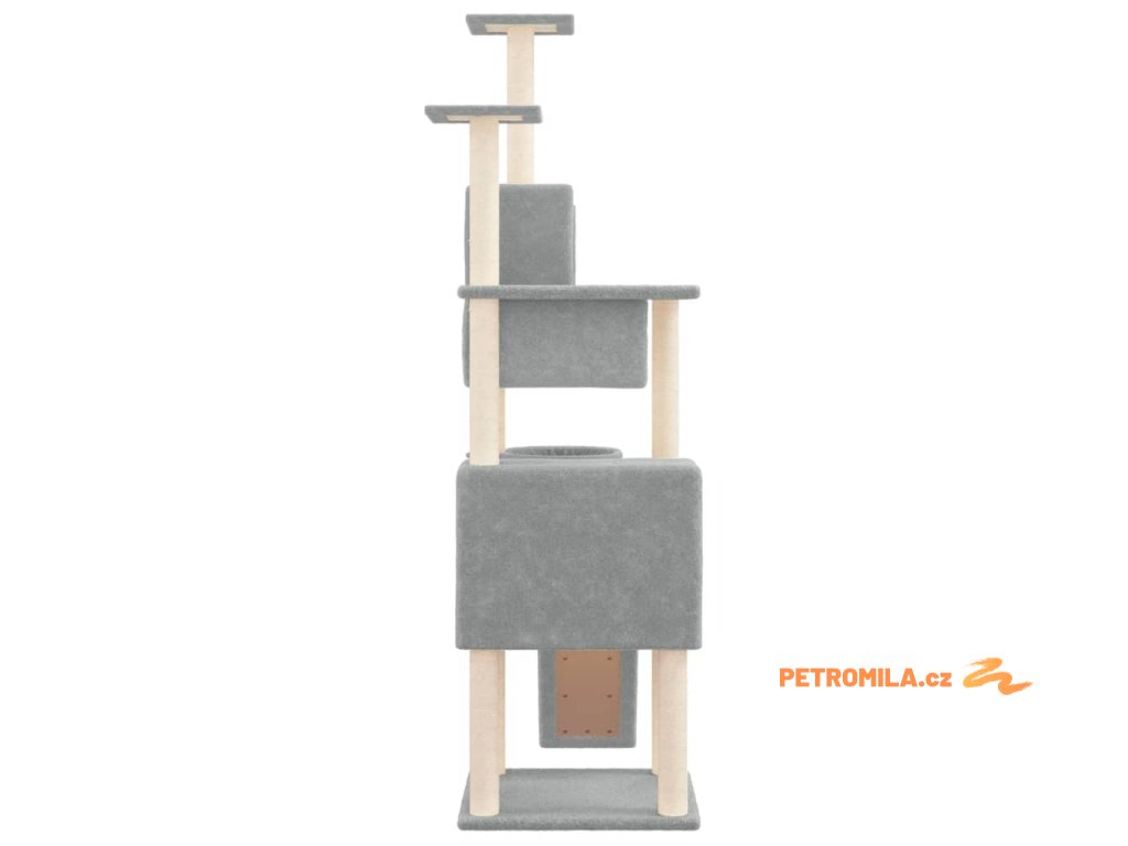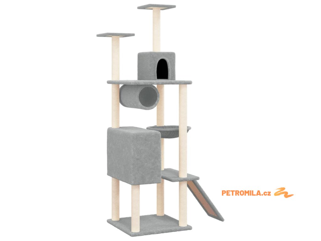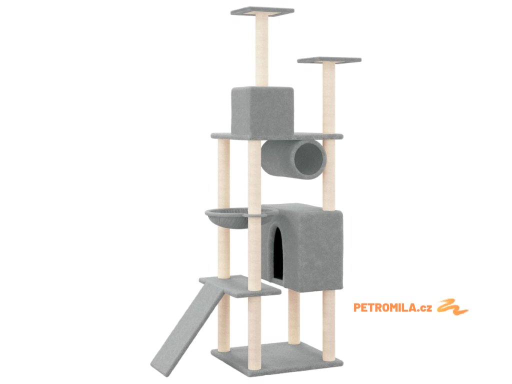 Škrabadlo pro kočky se sisalovými sloupky světle šedé 168 cm