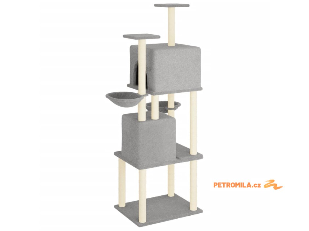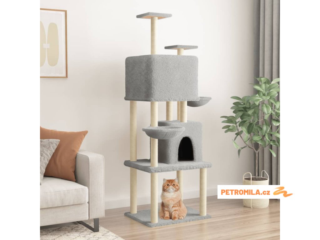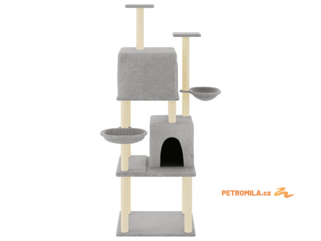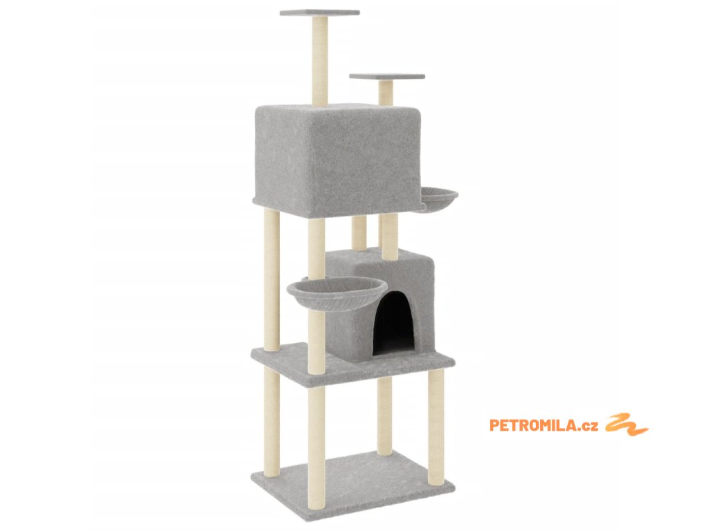 Škrabadlo pro kočky se sisalovými sloupky světle šedé 180 cm