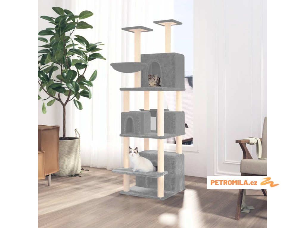 Škrabadlo pro kočky se sisalovými sloupky světle šedé 180 cm