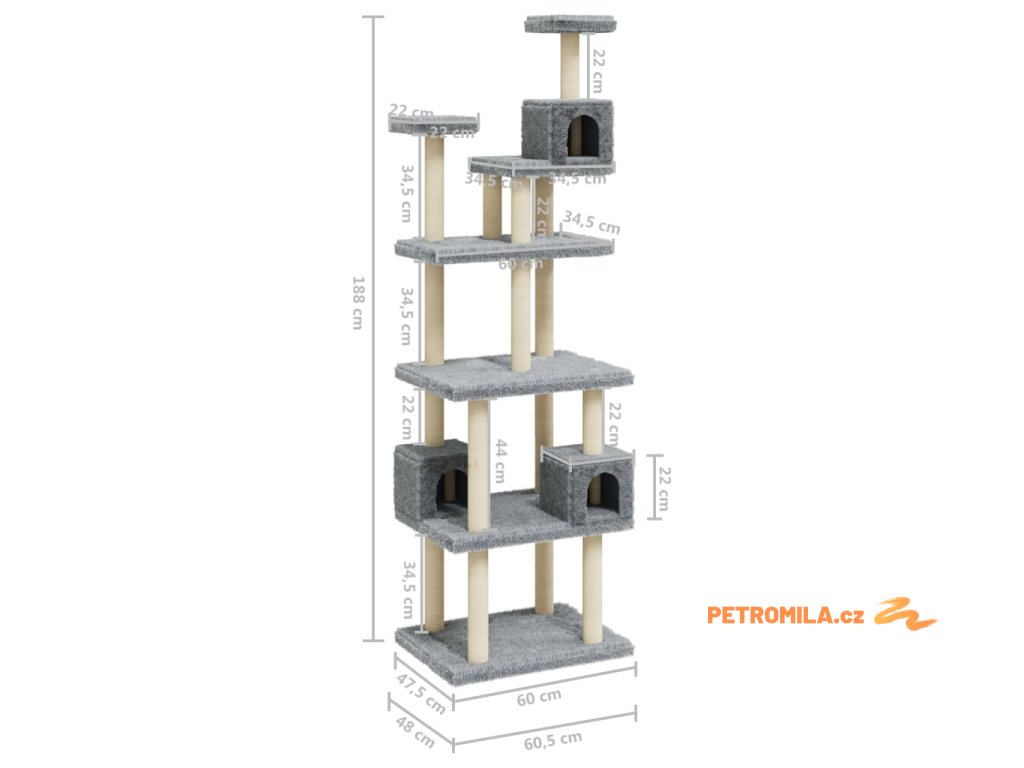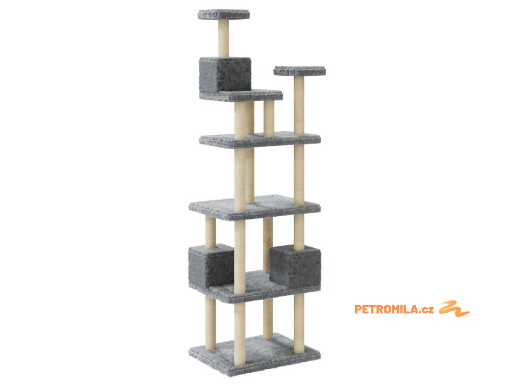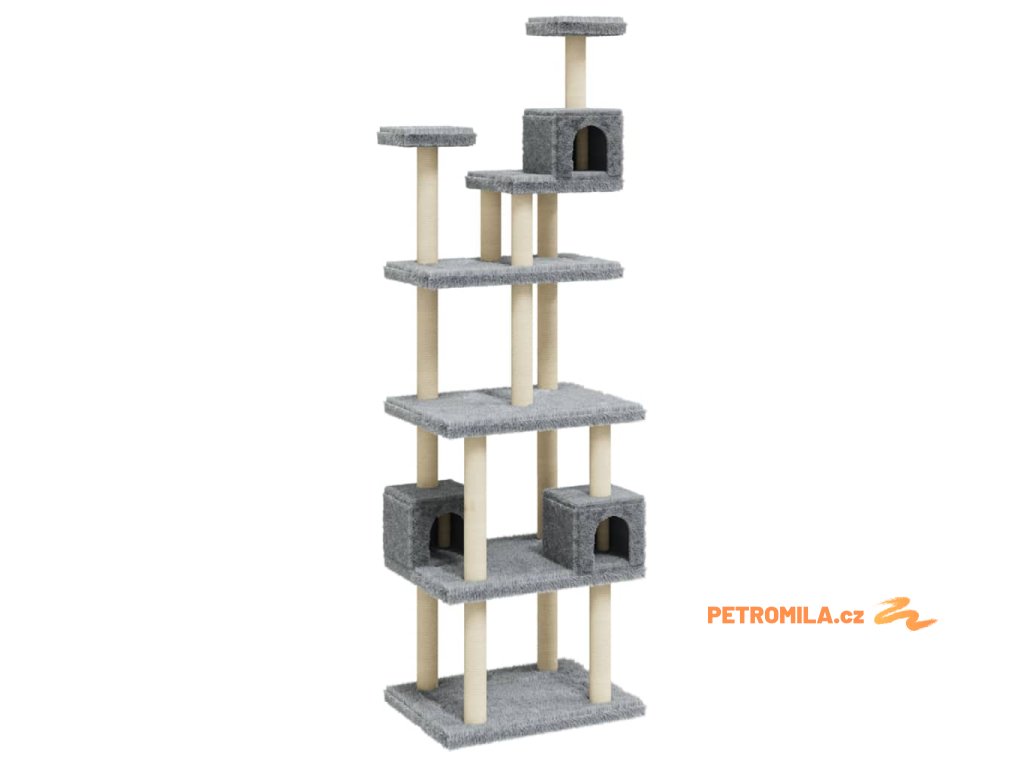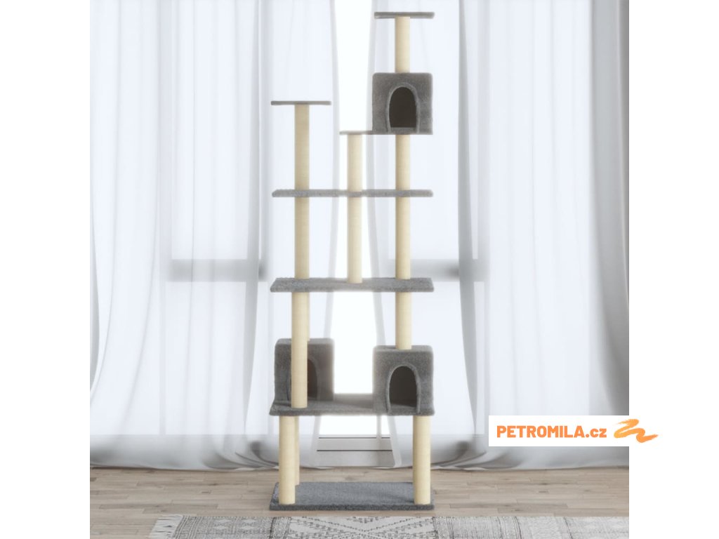 Škrabadlo pro kočky se sisalovými sloupky světle šedé 188 cm