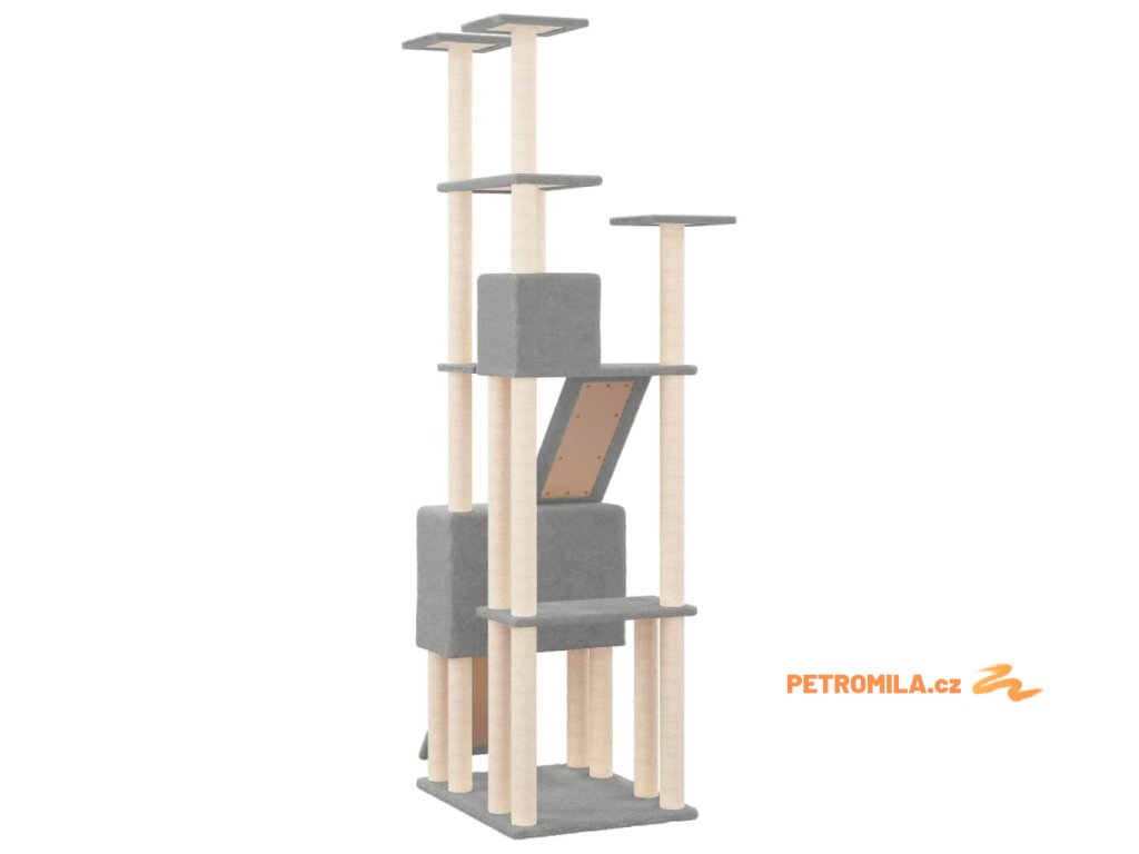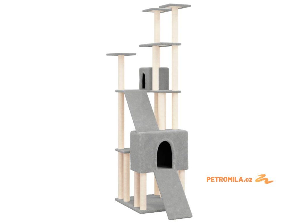 Škrabadlo pro kočky se sisalovými sloupky světle šedé 190 cm