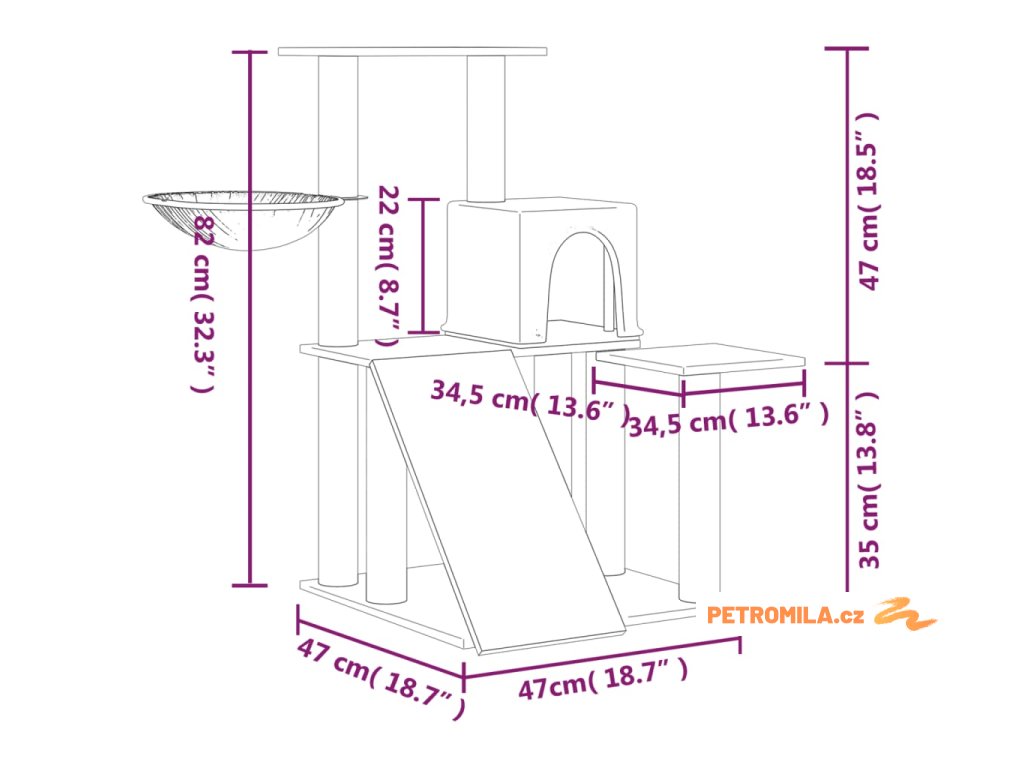 - Všestranná věž pro kočky: Víceúrovňový nábytek pro kočky je navržen s 1 domečkem, 1 hamakou, 1 žebříkem a plošinami, které poskytují kočkám ideální místo pro šplhání, sezení, škrábání, schovávání se a také k odpočinku.