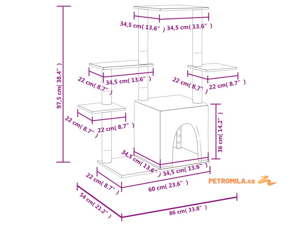 - Věž pro kočky "vše v jednom": Víceúrovňový nábytek pro kočky je navržen s domečkem a plošinami, které poskytují kočkám ideální místo pro šplhání, sezení, škrábání, schovávání se a také k odpočinku.