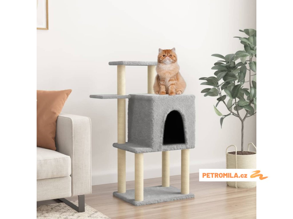 - Přírodní sisalové sloupky: Odolné a pevné sloupky s přírodním sisalem tohoto škrabadla dokonale uspokojí škrabací instinkt koček a zabrání jim poškrábat váš nábytek.