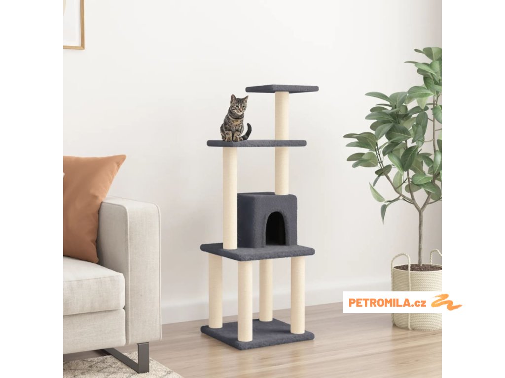 Škrabadlo pro kočky se sisalovými sloupky tmavě šedé 105 cm