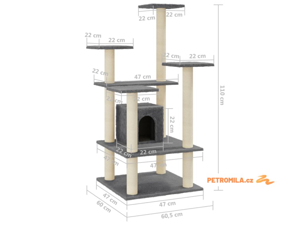 Škrabadlo pro kočky se sisalovými sloupky tmavě šedé 110 cm