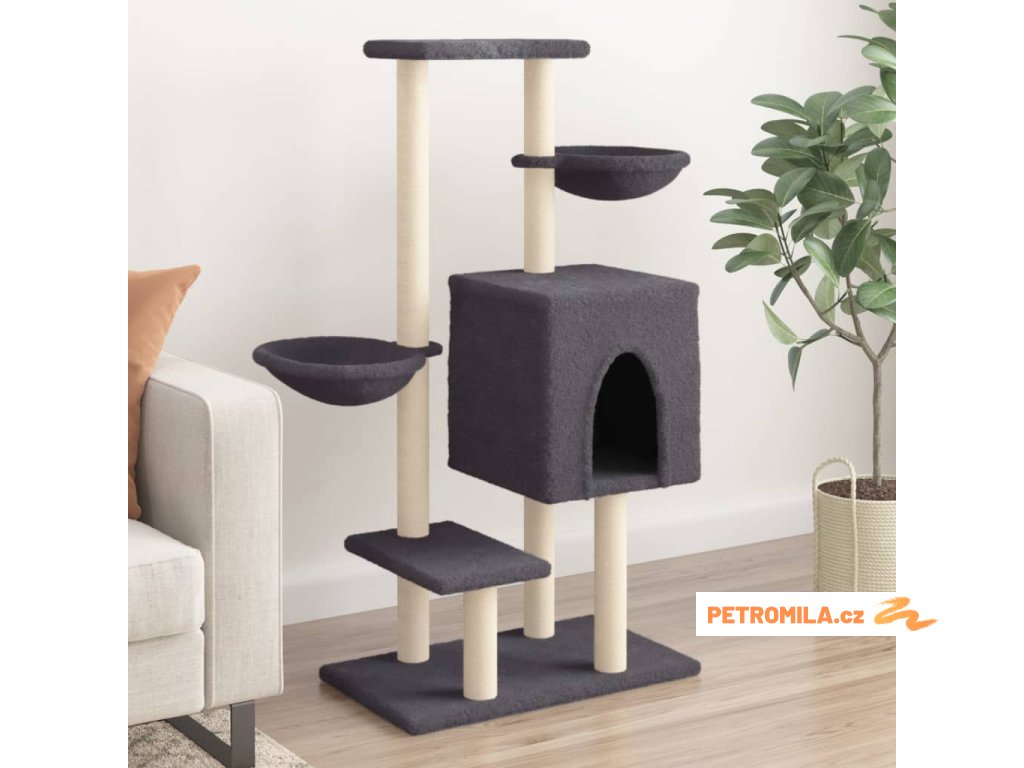 Škrabadlo pro kočky se sisalovými sloupky tmavě šedé 117 cm
