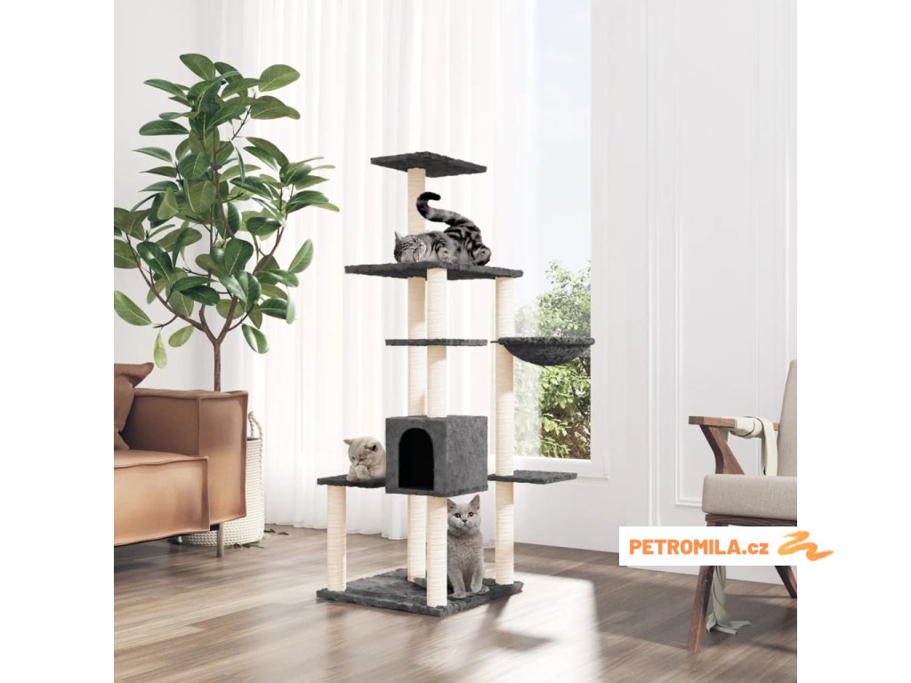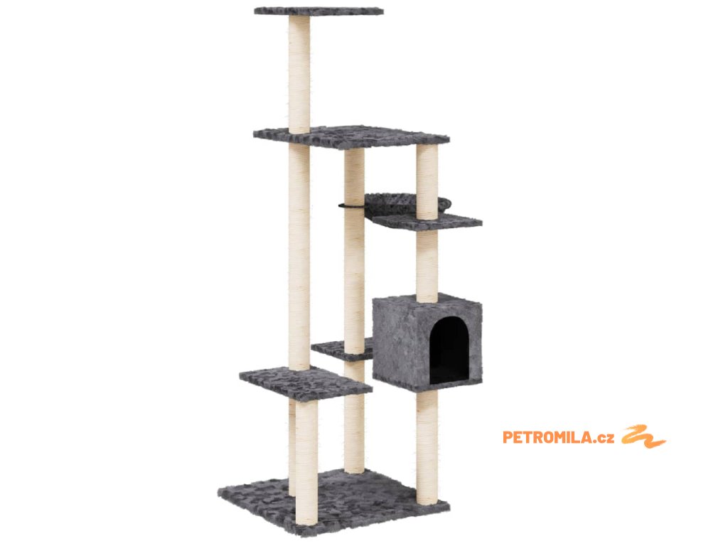 Škrabadlo pro kočky se sisalovými sloupky tmavě šedé 142 cm