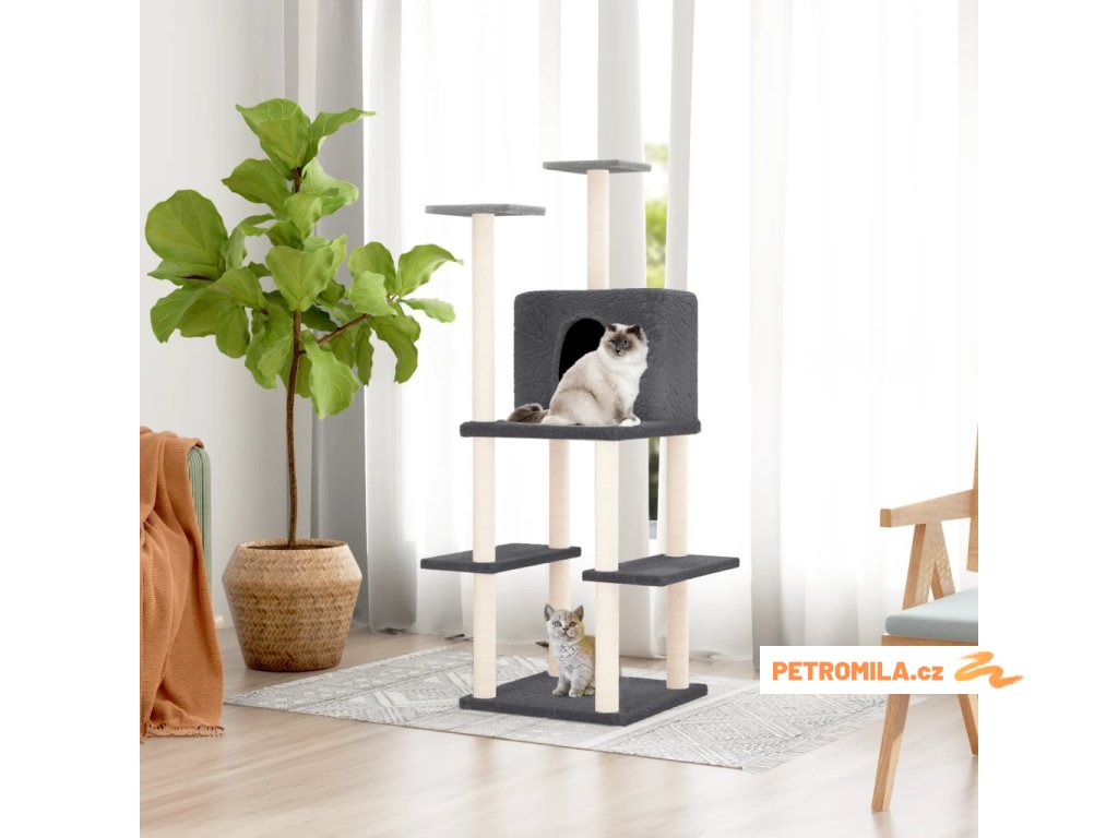 Škrabadlo pro kočky se sisalovými sloupky tmavě šedé 144,5 cm