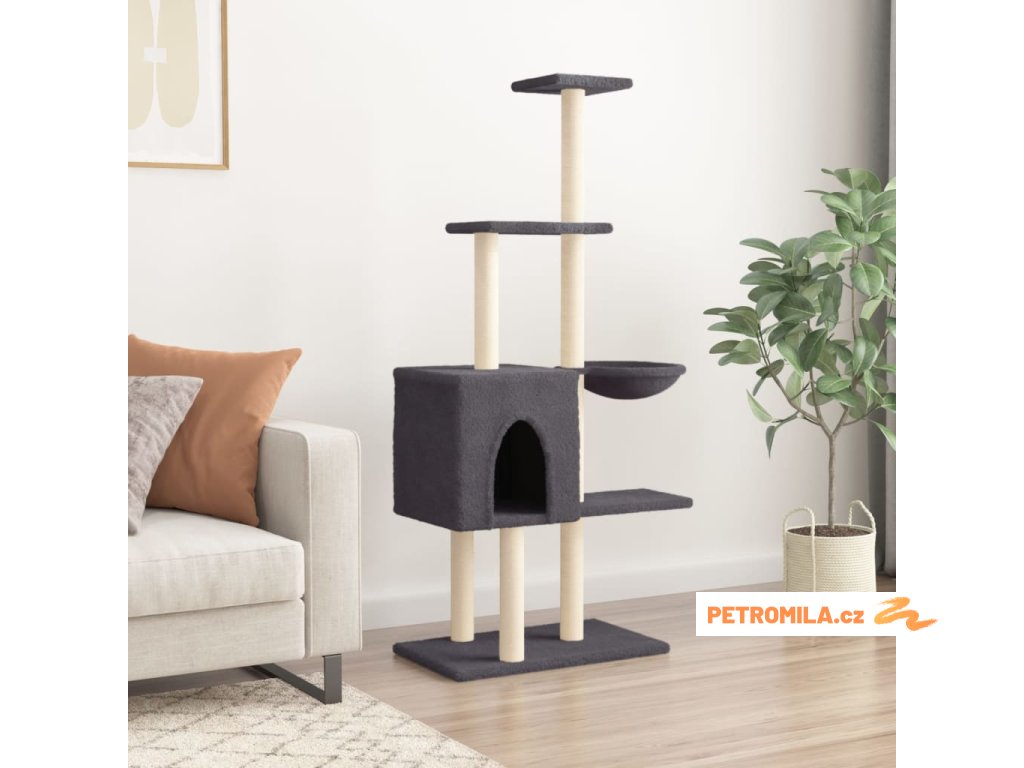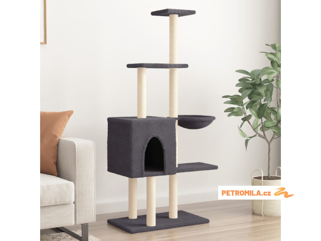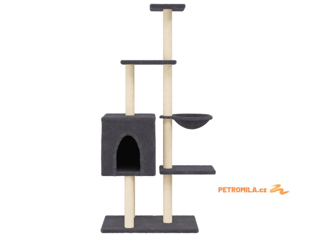 Škrabadlo pro kočky se sisalovými sloupky tmavě šedé 145 cm