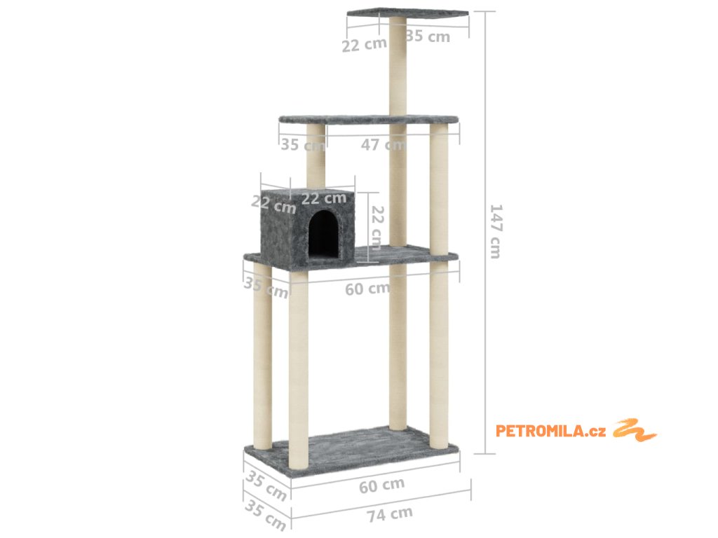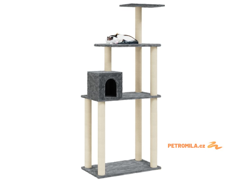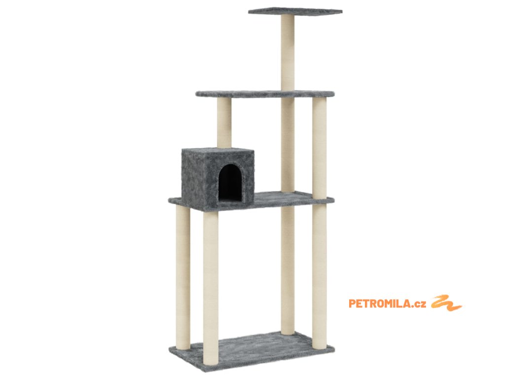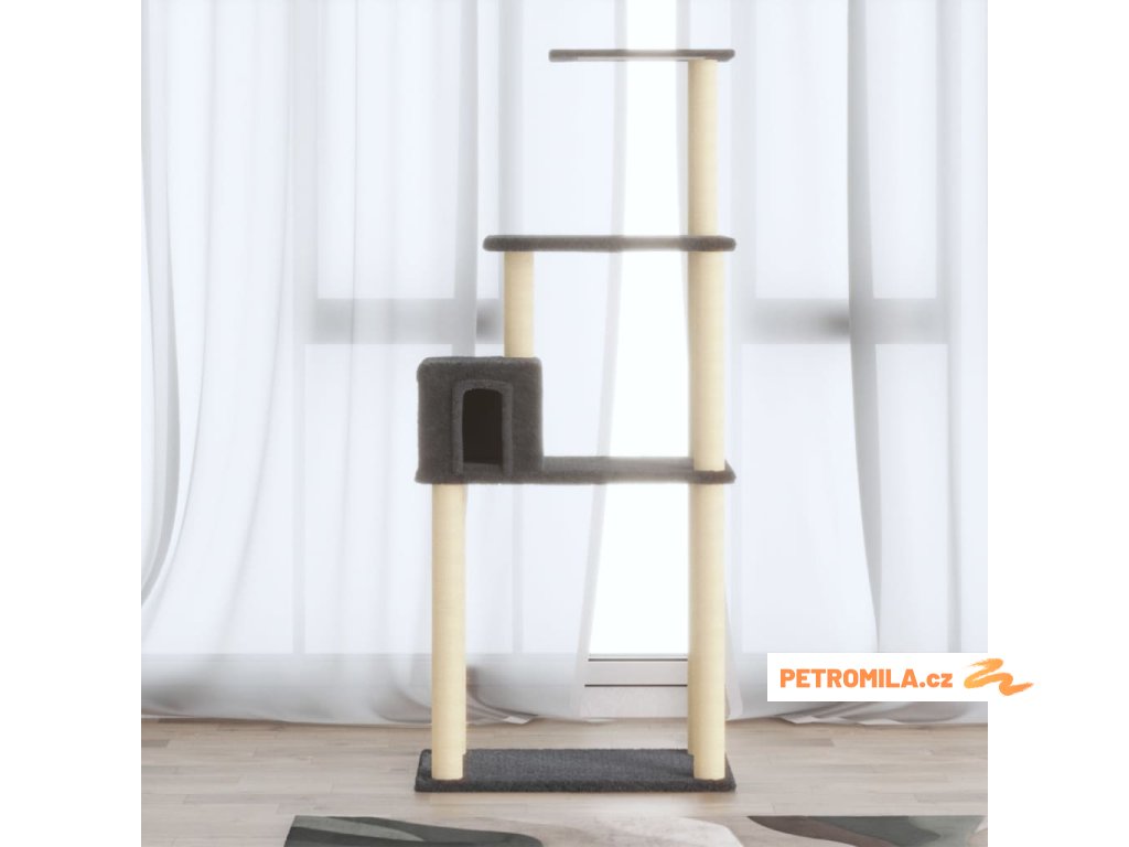 Škrabadlo pro kočky se sisalovými sloupky tmavě šedé 147 cm
