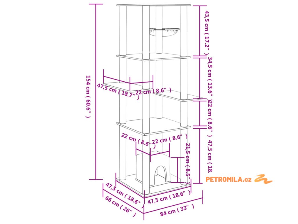 - Všestranná věž pro kočky: Víceúrovňový nábytek pro kočky je navržen s domečkem, košem a plošinami, které poskytují kočkám ideální místo pro šplhání, sezení, škrábání, schovávání se a také k odpočinku.