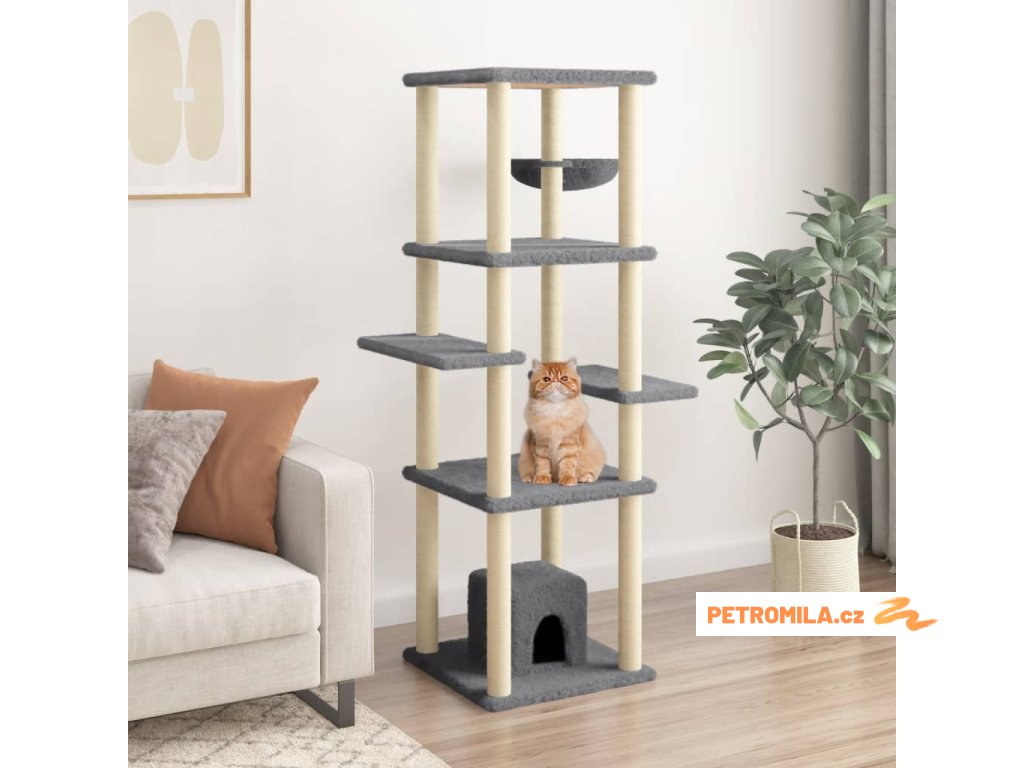 Škrabadlo pro kočky se sisalovými sloupky tmavě šedé 154 cm