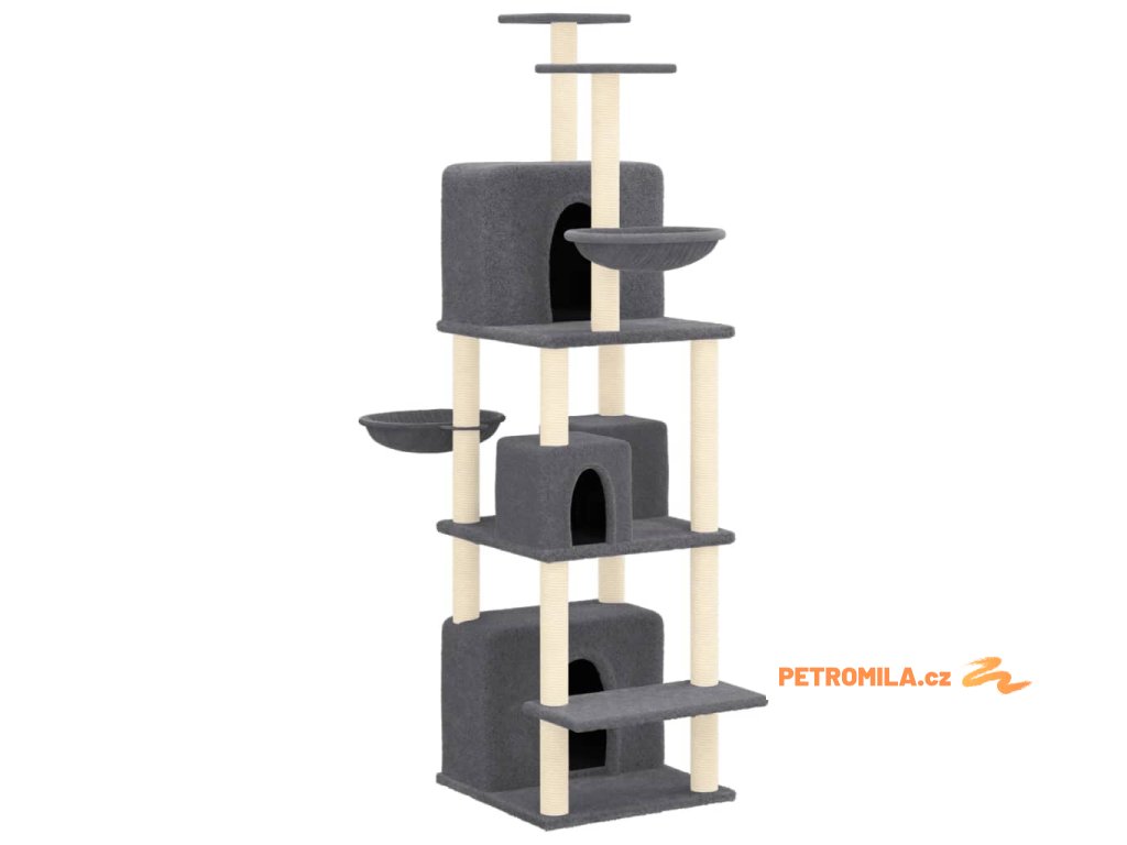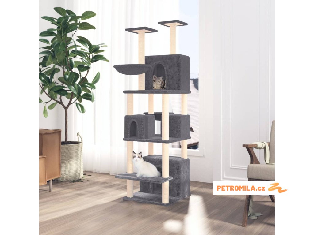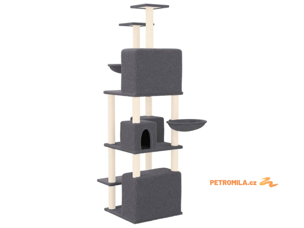 Škrabadlo pro kočky se sisalovými sloupky tmavě šedé 180 cm