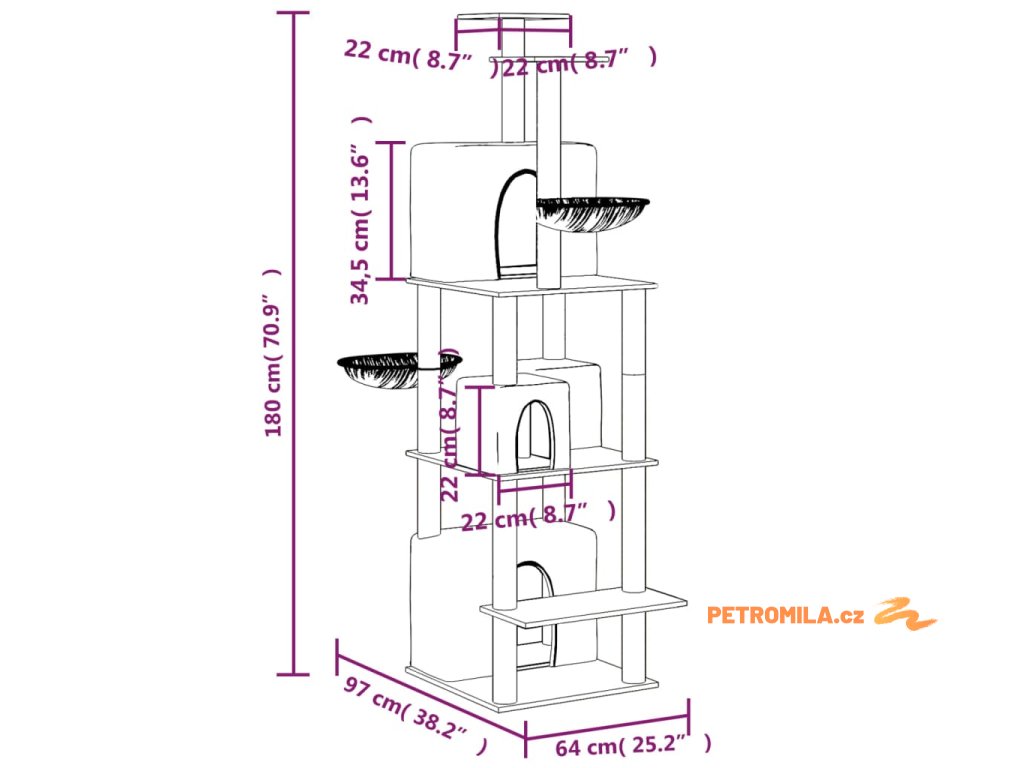 - Všestranná věž pro kočky: Víceúrovňový nábytek pro kočky je navržen se 4 domečky, 2 hamakami a plošinami, které poskytují kočkám ideální místo pro šplhání, sezení, škrábání, schovávání se a také k odpočinku.