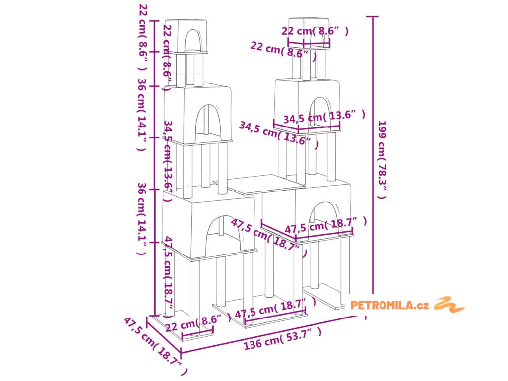 - Všestranná věž pro kočky: Víceúrovňový nábytek pro kočky je navržen s plošinou a 6 domečky, které poskytují kočkám ideální místo pro šplhání, sezení, škrábání, schovávání se a také k odpočinku.
