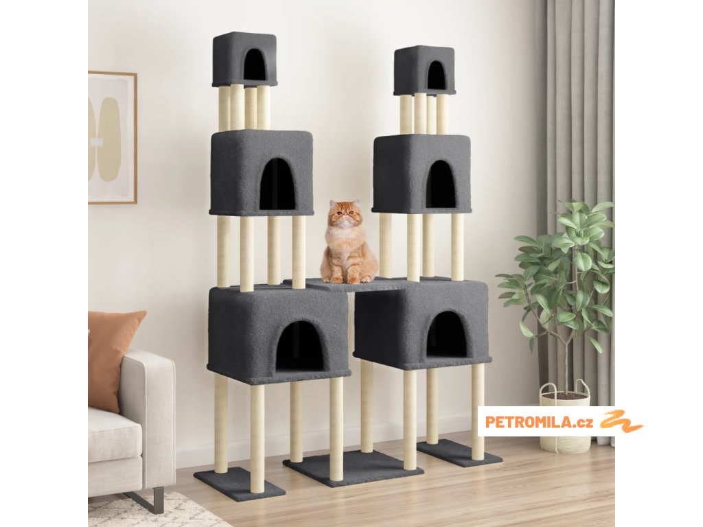 Škrabadlo pro kočky se sisalovými sloupky tmavě šedé 199 cm
