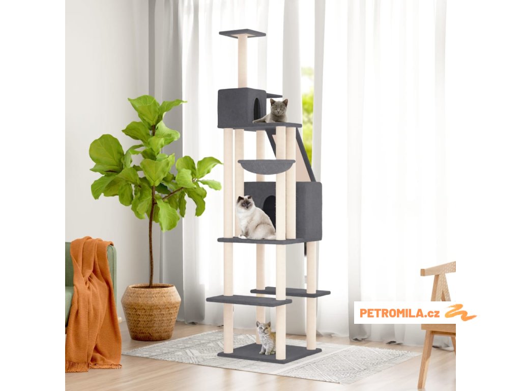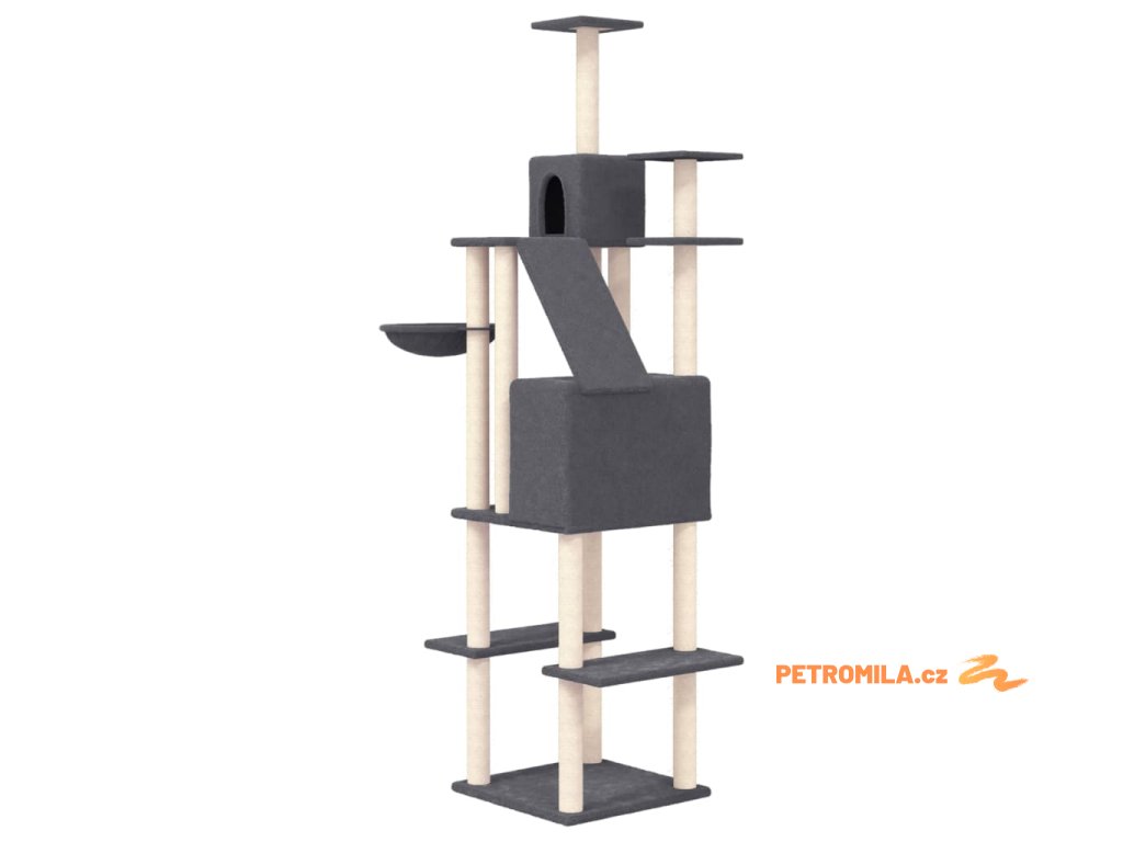 Škrabadlo pro kočky se sisalovými sloupky tmavě šedé 201 cm