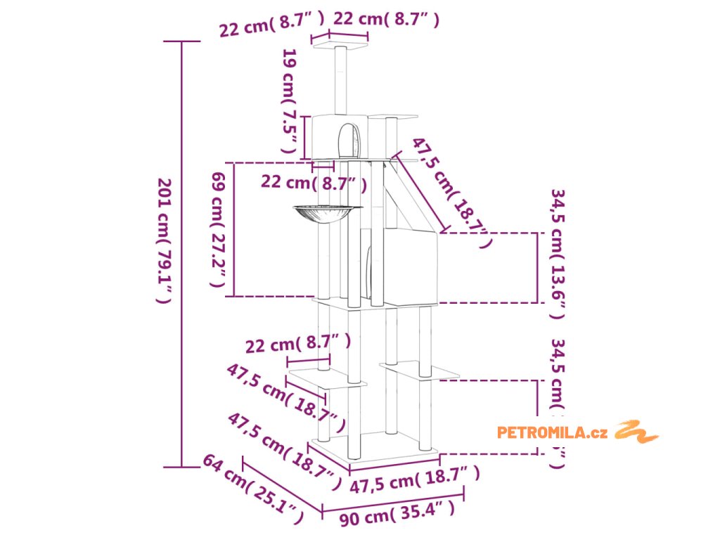 - Všestranná kočičí věž: Víceúrovňová škrabací věž pro kočky poskytuje kočce zábavu a kompaktní místo na hraní a dovádění a teplý pelíšek pro klidné zdřímnutí. Disponuje žebříkem, hamakou, 2 domečky a plošinami.
