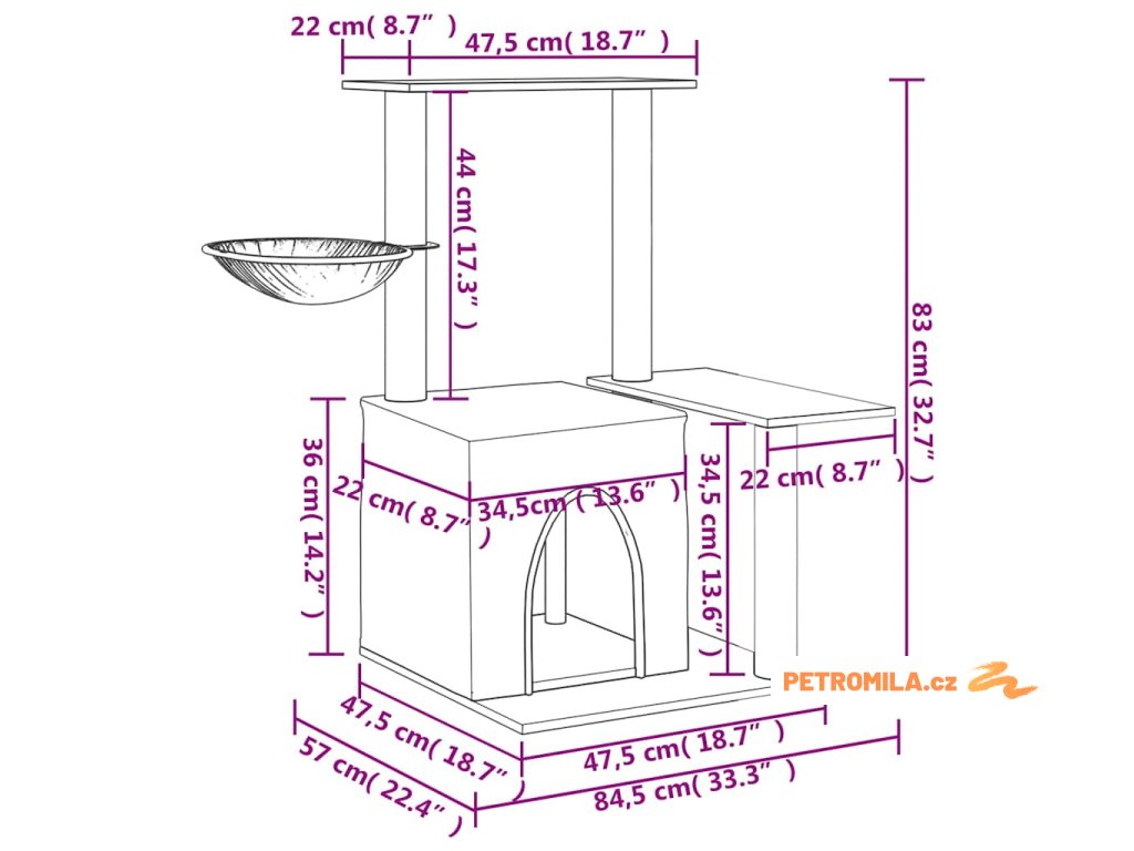 - Všestranná věž pro kočky: Víceúrovňový nábytek pro kočky je navržen s domečkem, košem a plošinami, které poskytují kočkám ideální místo pro šplhání, sezení, škrábání, schovávání se a také k odpočinku.