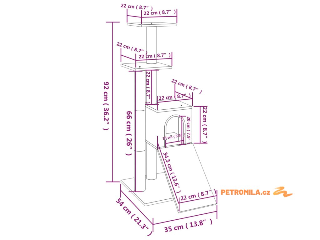 Vaši chlupatí kamarádi si mohou na tomto sisalovým provázkem obaleném škrabadlu brousit své drápky, což jim umožňuje vybít si své přirozené škrabací instinkty. Navíc si užijí spoustu zábavy, až se po kočičím stromě budou navzájem honit nahoru a dolů. Jakmile se do sytosti vyřádí, zamilují si vaši malí kamarádi odpočinek na vyšších plošinách, odkud budou mít krásný rozhled. Mohou se také ukrýt v útulném domečku a zdřímnout si v něm nebo se prospat v pohodlném plyšovém pelíšku. V dolní části se nachází rampa, po které mohou vylézt.