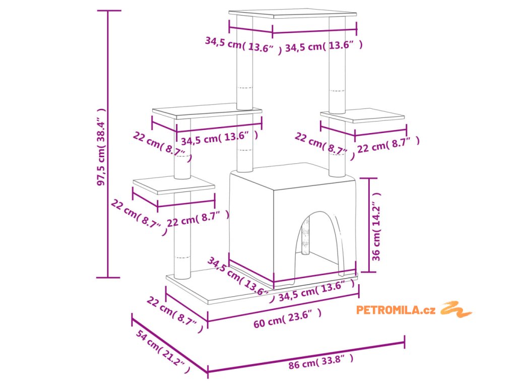 - Věž pro kočky "vše v jednom": Víceúrovňový nábytek pro kočky je navržen s domečkem a plošinami, které poskytují kočkám ideální místo pro šplhání, sezení, škrábání, schovávání se a také k odpočinku.