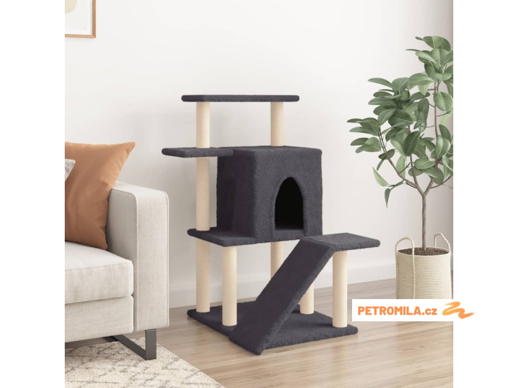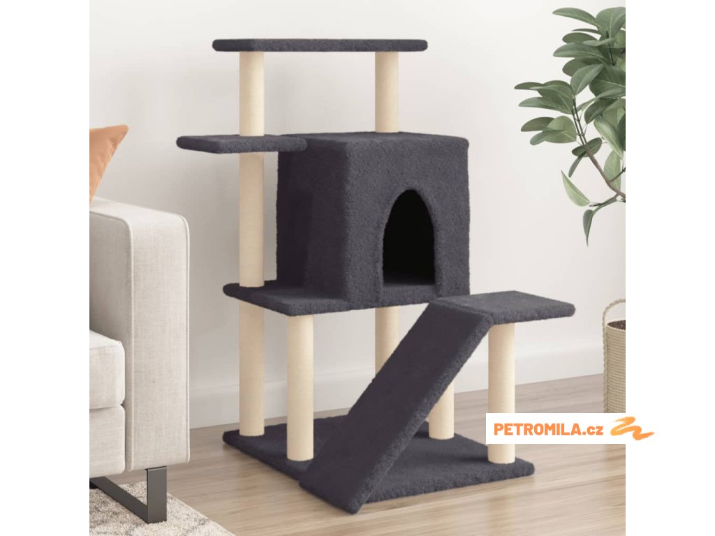 - Přírodní sisalové sloupky: Odolné a pevné sloupky s přírodním sisalem tohoto škrabadla dokonale uspokojí škrabací instinkt koček a zabrání jim poškrábat váš nábytek.
