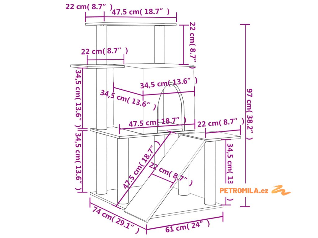 - Všestranná věž pro kočky: Víceúrovňový nábytek pro kočky je navržen s domečkem, žebříkem a plošinami, které poskytují kočkám ideální místo pro šplhání, sezení, škrábání, schovávání se a také k odpočinku.