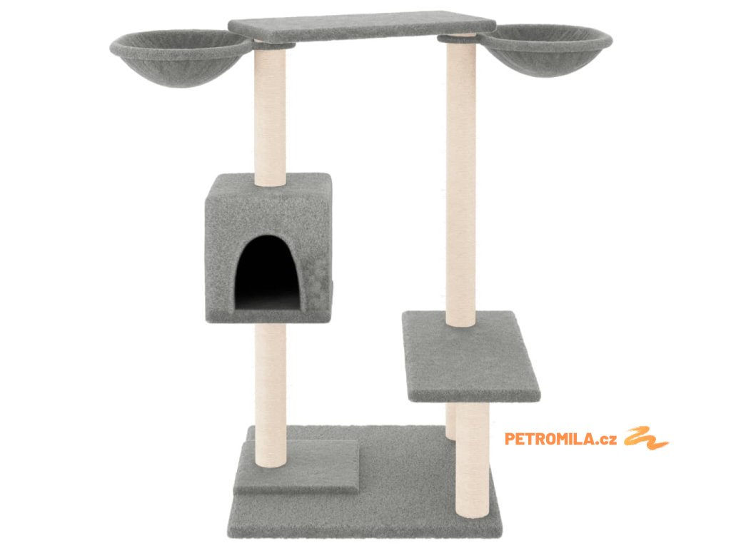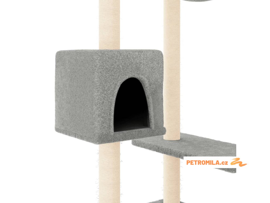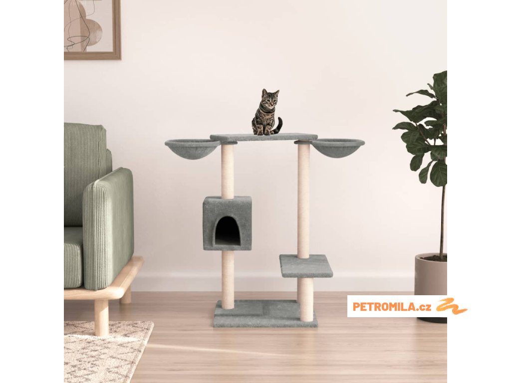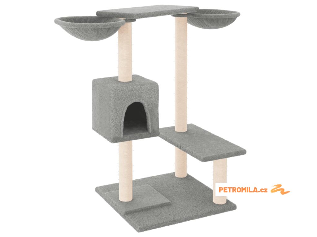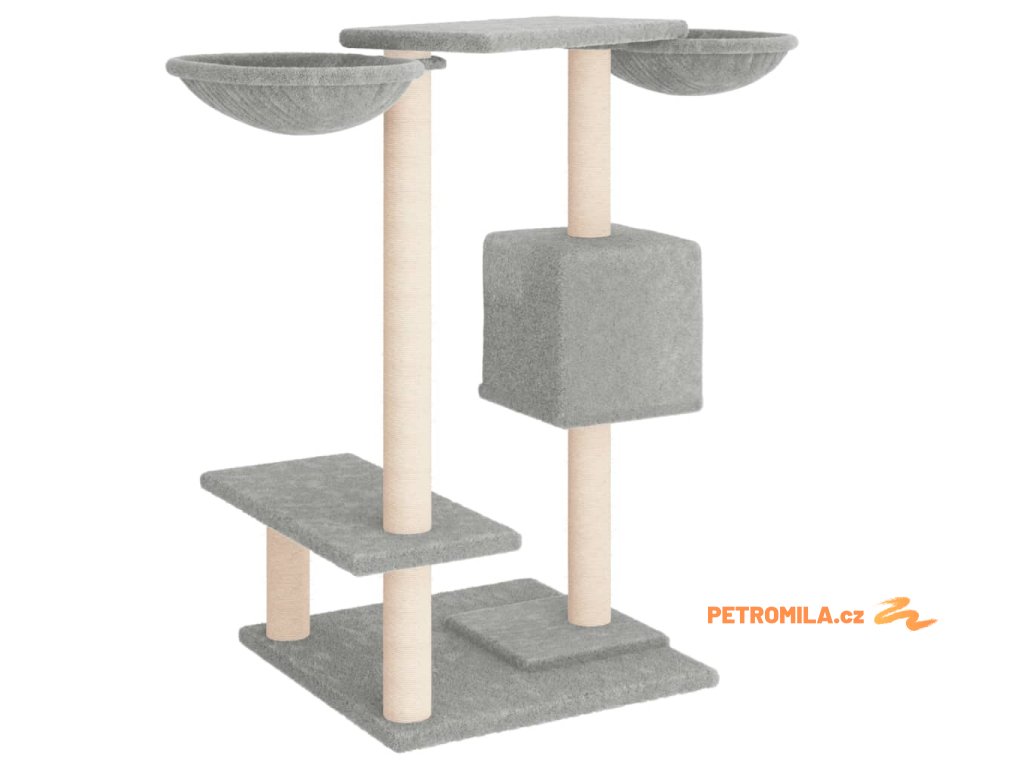 - Přírodní sisalové sloupky: Odolné a pevné sloupky s přírodním sisalem tohoto škrabadla dokonale uspokojí škrabací instinkt koček a zabrání jim poškrábat váš nábytek.