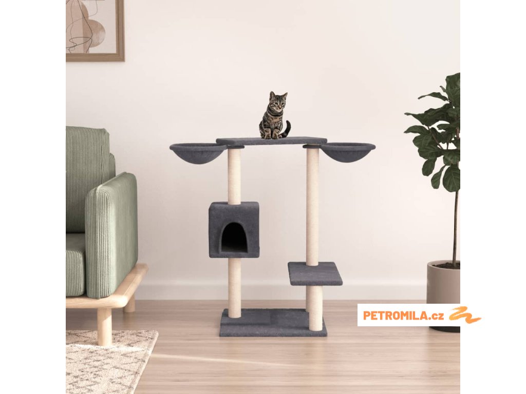 - Přírodní sisalové sloupky: Odolné a pevné sloupky s přírodním sisalem tohoto škrabadla dokonale uspokojí škrabací instinkt koček a zabrání jim poškrábat váš nábytek.