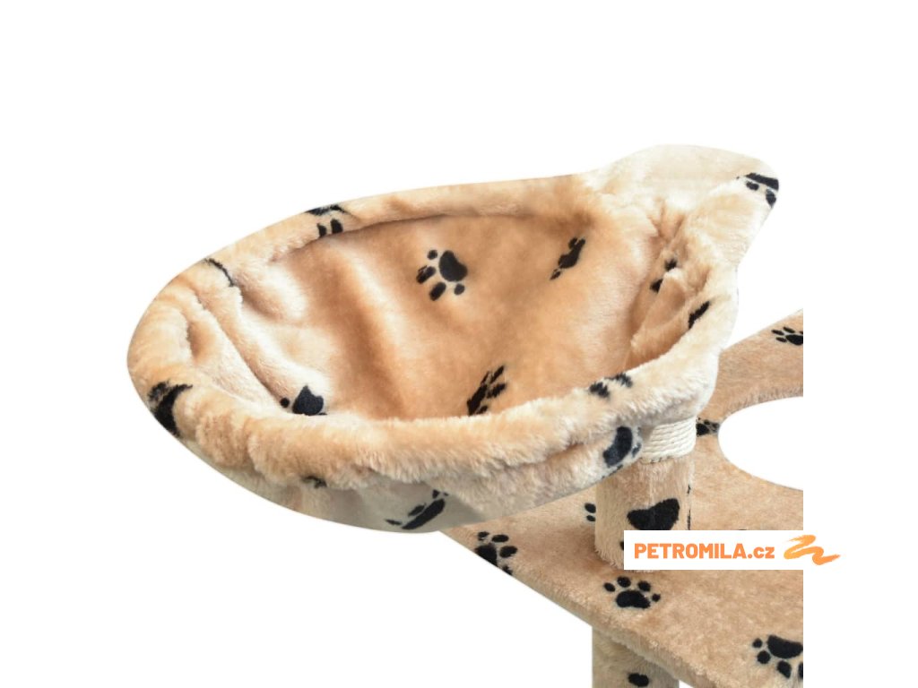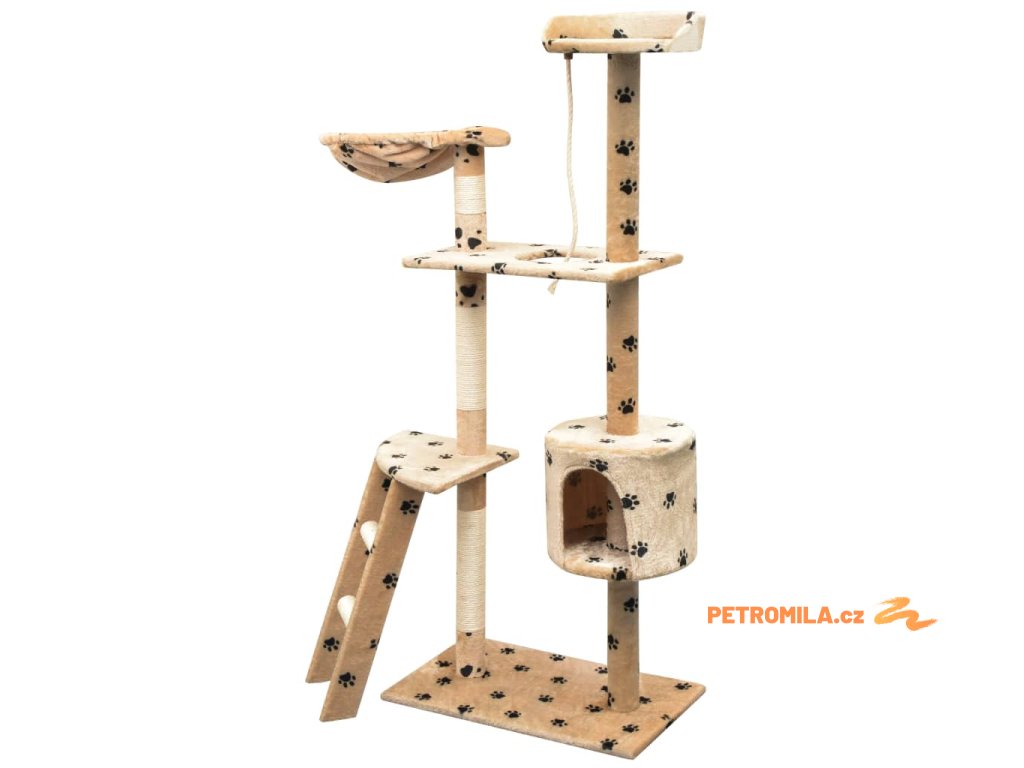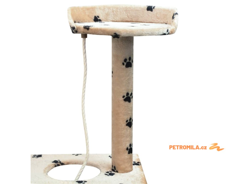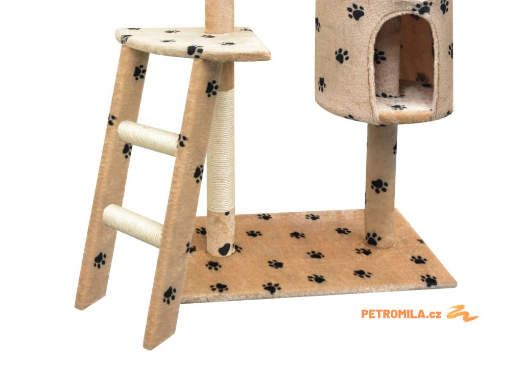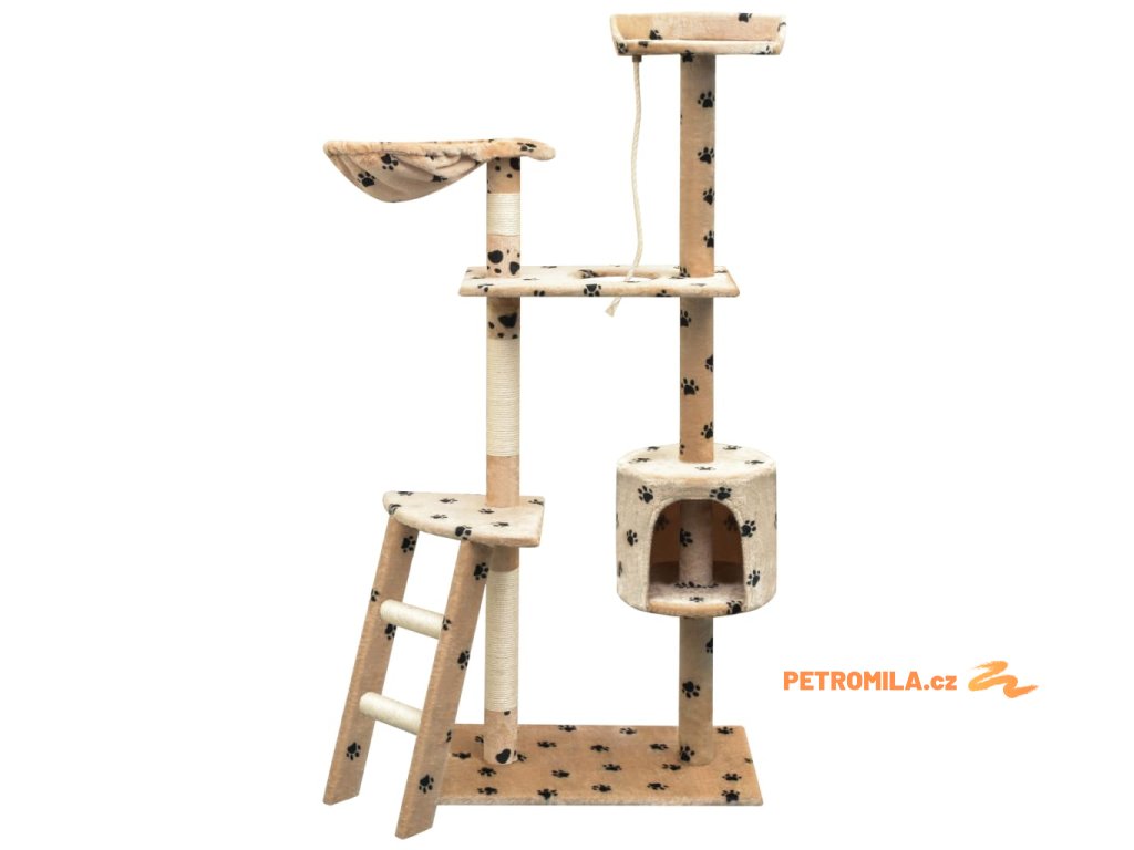 Škrabadlo pro kočky sisalové sloupky 125cm béžová potisk tlapek