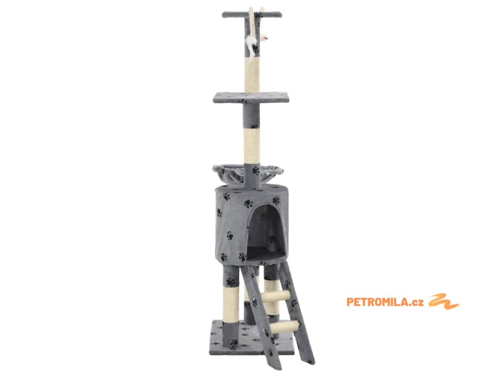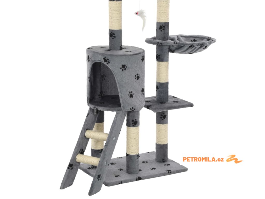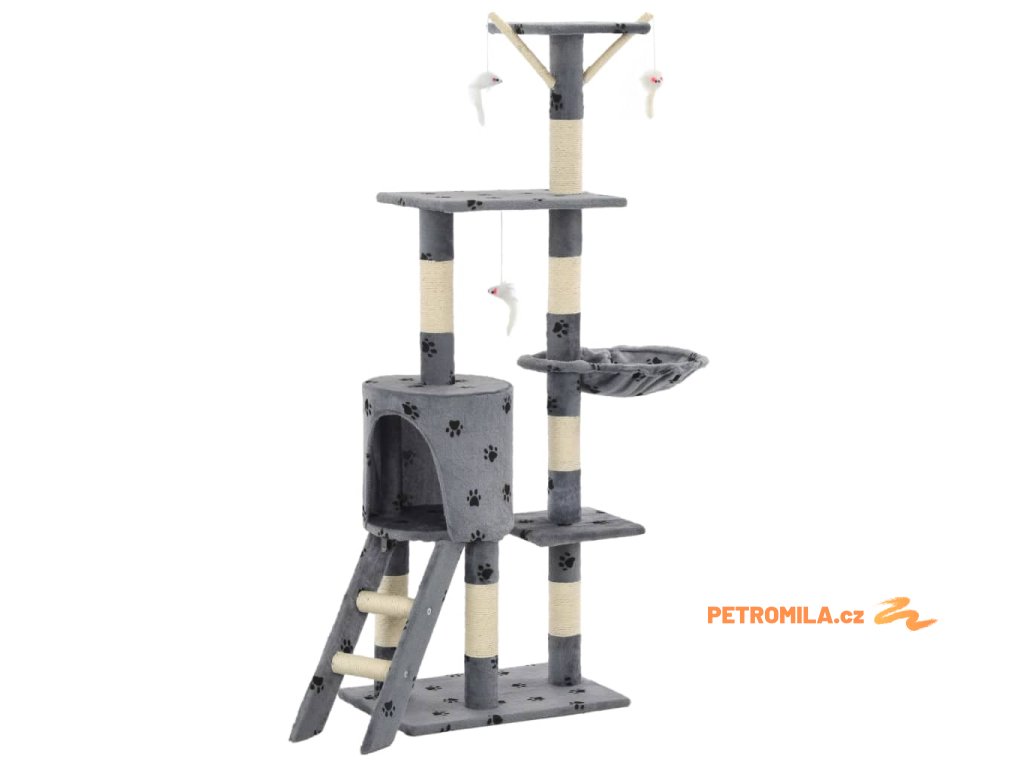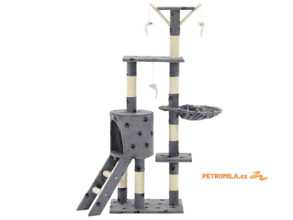 Škrabadlo pro kočky sisalové sloupky 138 cm šedé s tlapkami