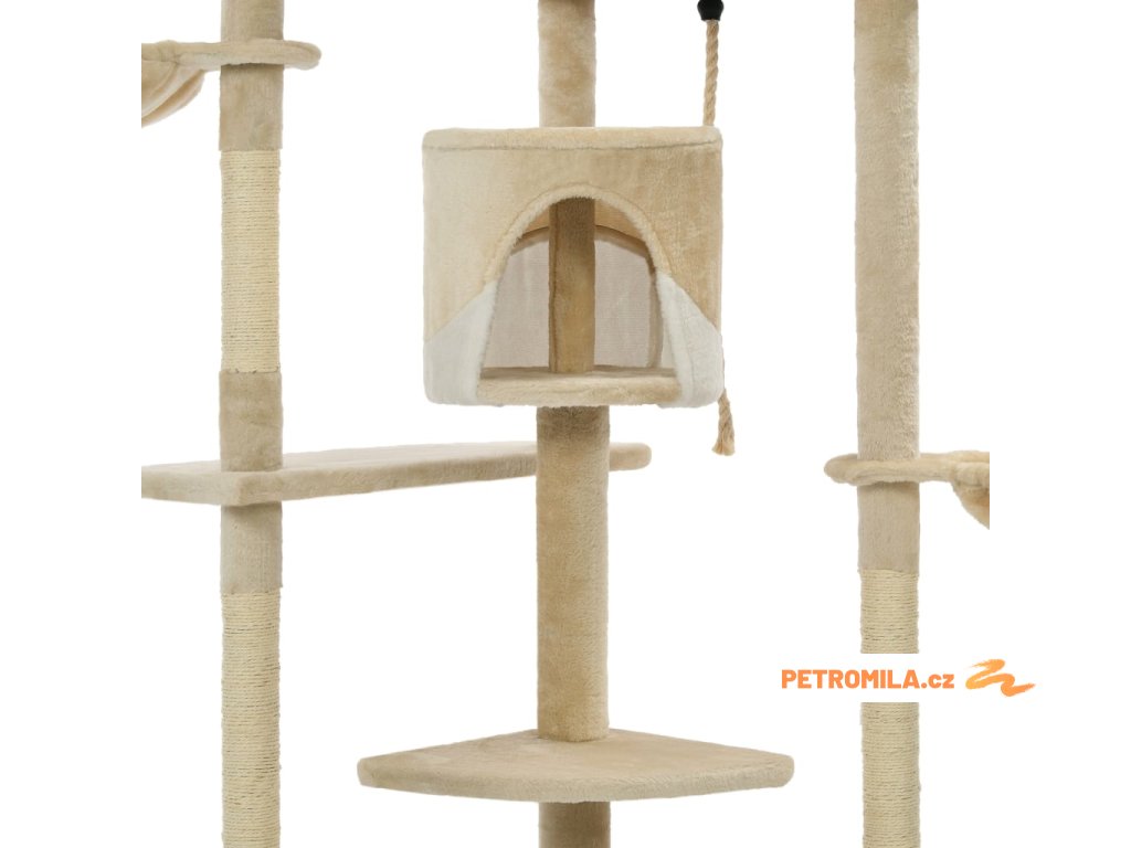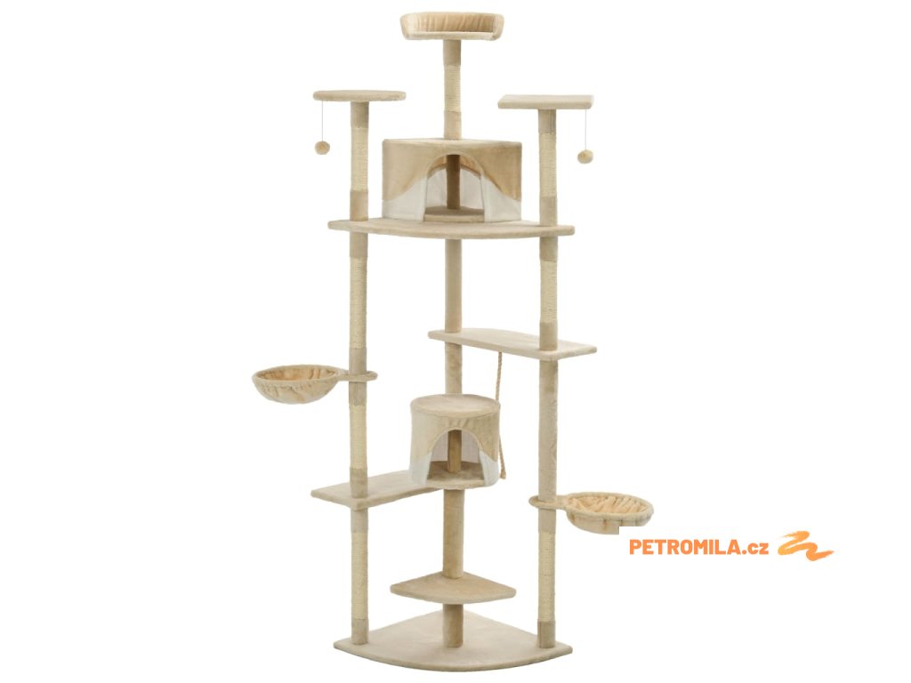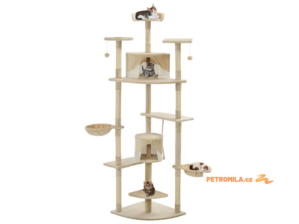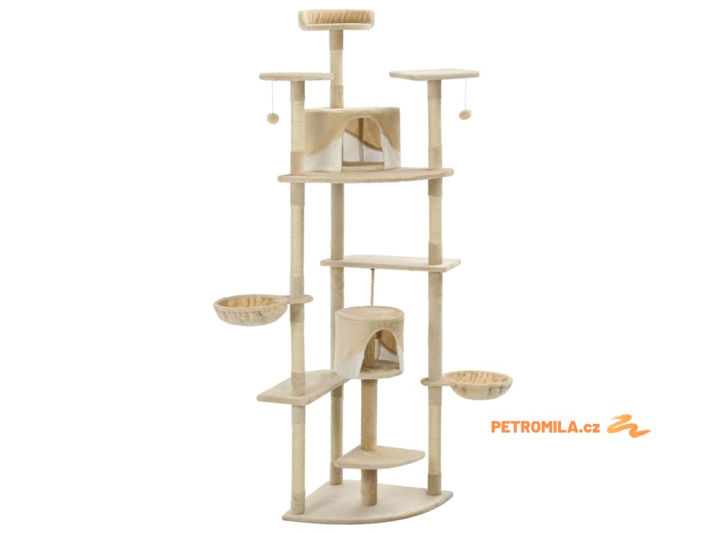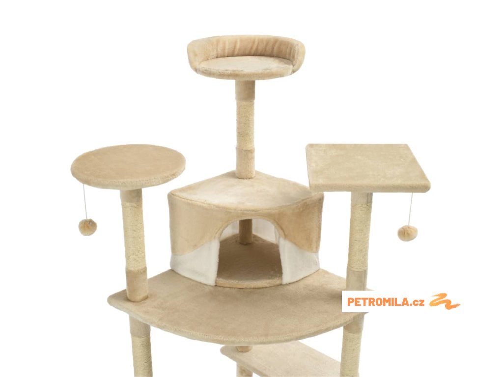Vaši chlupatí kamarádi si mohou brousit drápky na tomto kočičím škrabadle obaleném sisalovým provázkem, které kočkám dává možnost vybít své přirozené škrabací instinkty. Kočičky se také budou moci po stromě navzájem honit nahoru a dolů. Na vrcholu kočičího stromu jsou 2 zavěšené hračky, které zaujmou všechny zvídavé mazlíčky. Až se vyhrají a vyřádí, vaši kočičí kamarádi si rádi odpočinou na vyšších plošinách, ze kterých budou mít krásný rozhled. Mohou se také ukrýt v útulných domečcích, a dokonce si v nich i zdřímnout, a nebo se uložit k důkladnému spánku do pohodlných košíků.
