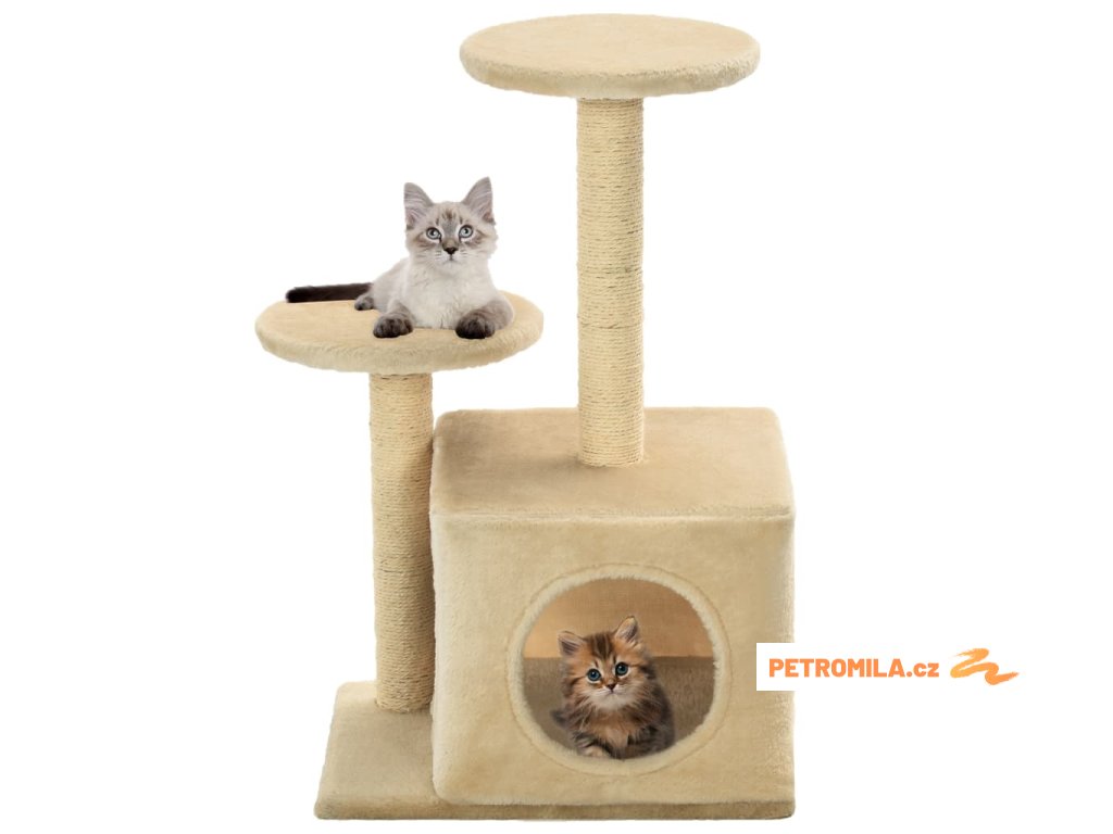 Vaši chlupatí kamarádi si mohou brousit své drápky na tomto sisálovým provázkem obaleném škrabadlu, které poskytuje kočkám možnost vybít své přirozené škrábavé instinkty. Po tomto zábavném kočičím stromě se také mohou navzájem honit nahoru a dolů. Pro odpočinek mohou vaše kočky využít plošiny, ze kterých budou mít krásný rozhled. Mohou se také ukrýt v útulném domečku, a dokonce si v něm zdřímnout. Škrabadlo je vhodné pro koťata.