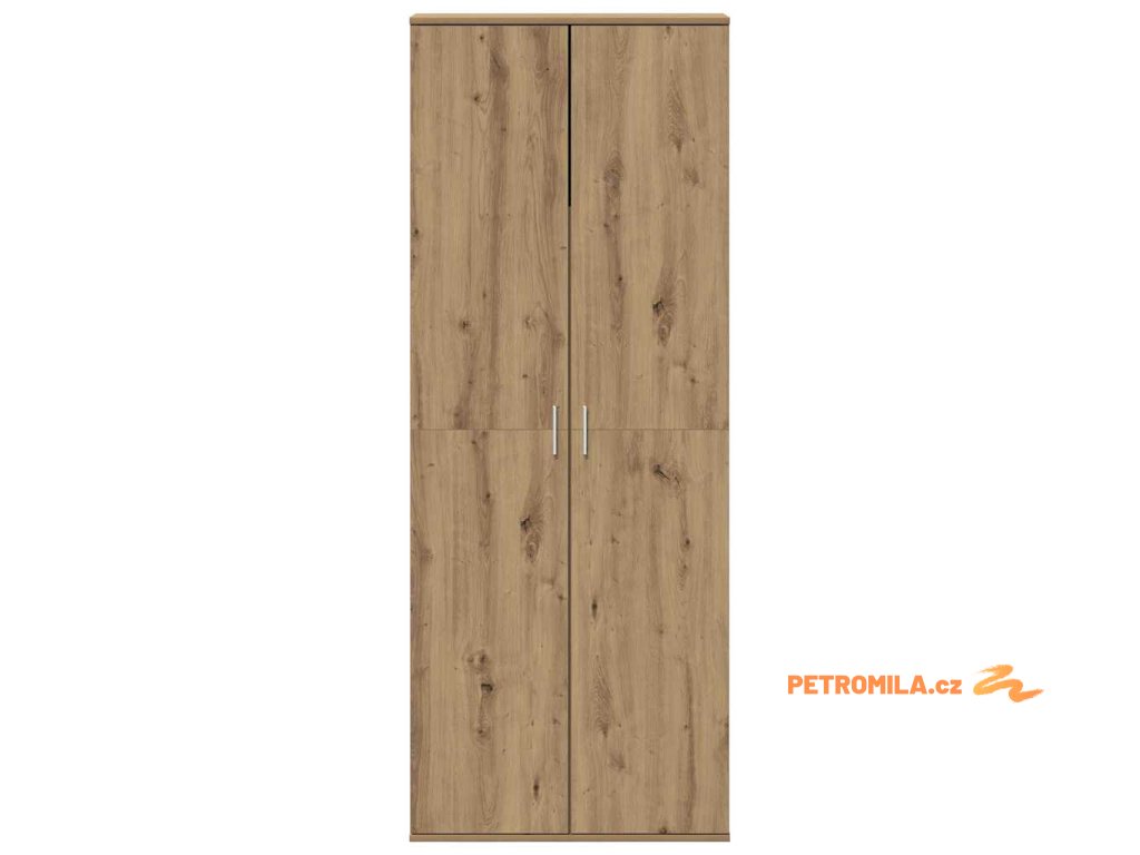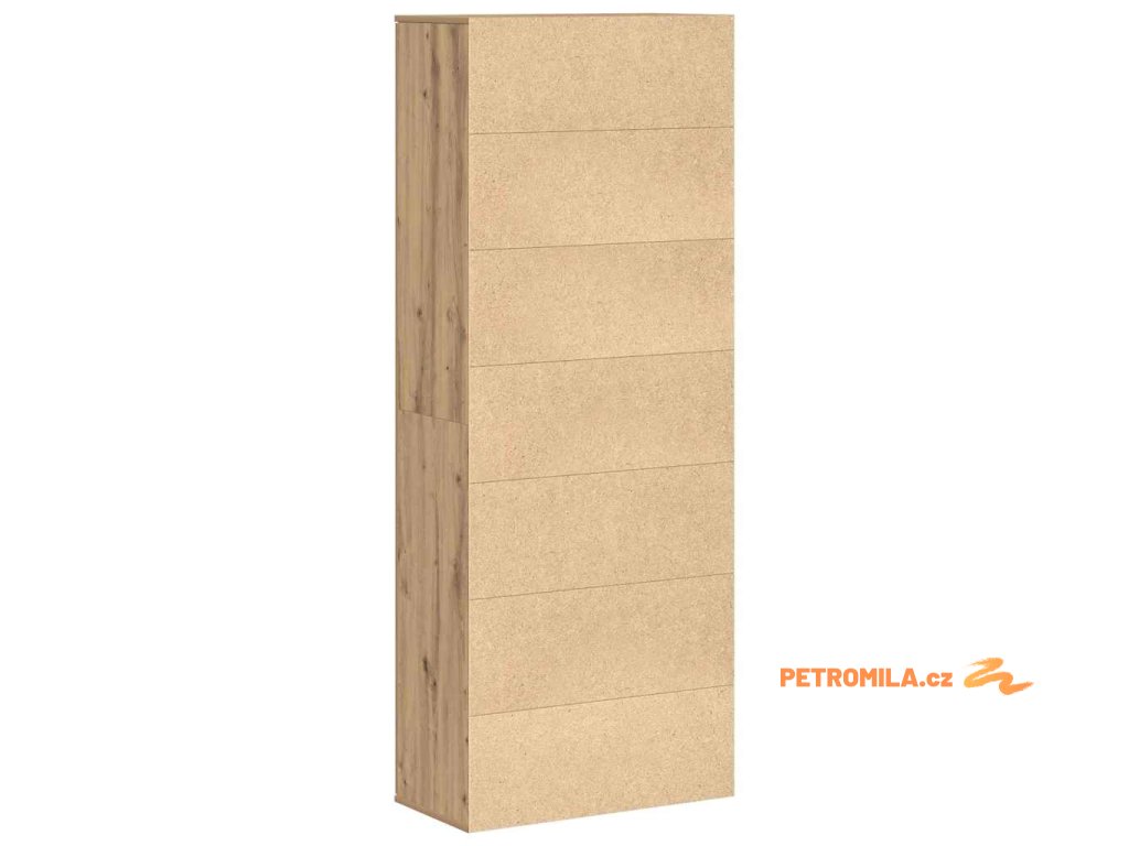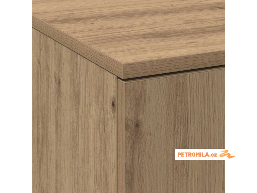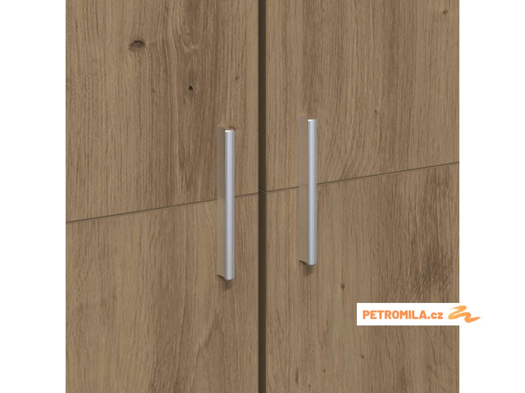 - Materiály: Tato skříň je vyrobena z kvalitního technického dřeva. Je dostatečně odolná na každodenní používání a texturovaný povrch vypadá dobře, snadno se čistí a odolává škrábancům – ideální pro živé domácnosti.