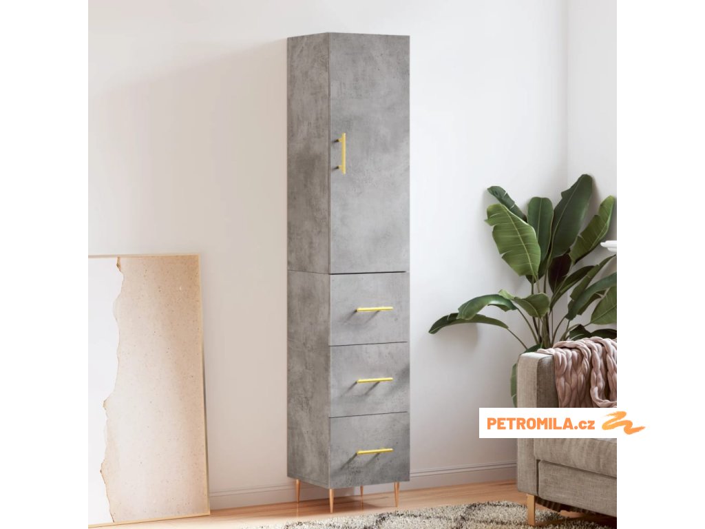 Skříň highboard betonově šedá 34,5x34x180 cm kompozitní dřevo