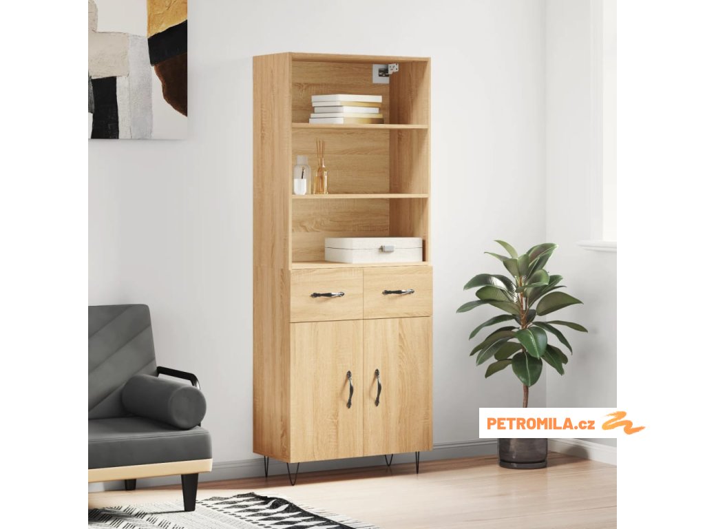 Skříň highboard dub sonoma 69,5 x 34 x 180 cm kompozitní dřevo