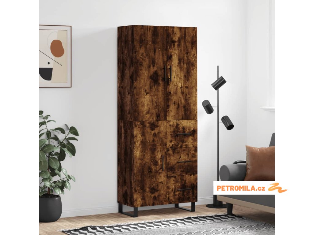 Skříň highboard kouřový dub 69,5 x 34 x 180 cm kompozitní dřevo
