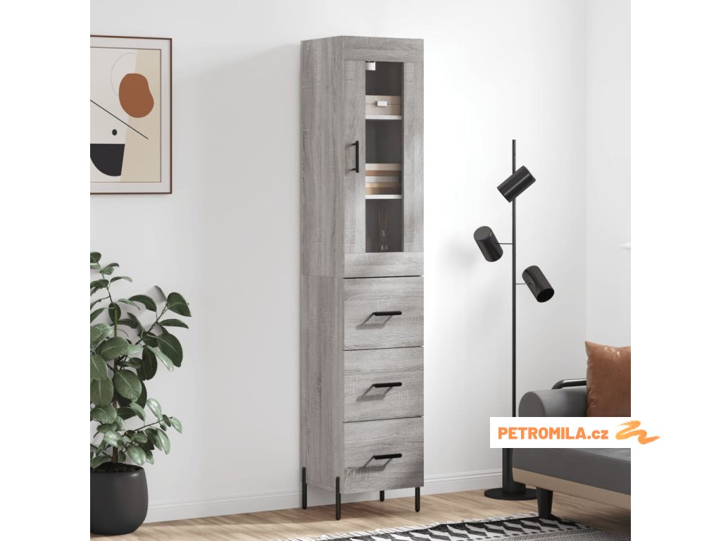Skříň highboard šedá sonoma 34,5 x 34 x 180 cm kompozitní dřevo