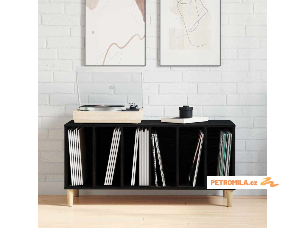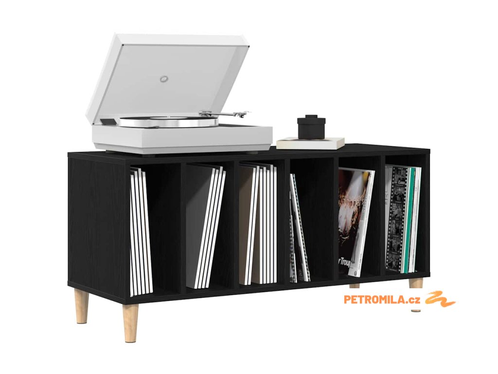 Skříň na gramofonové desky s policí Černý dub 100 x 38 x 48 cm
