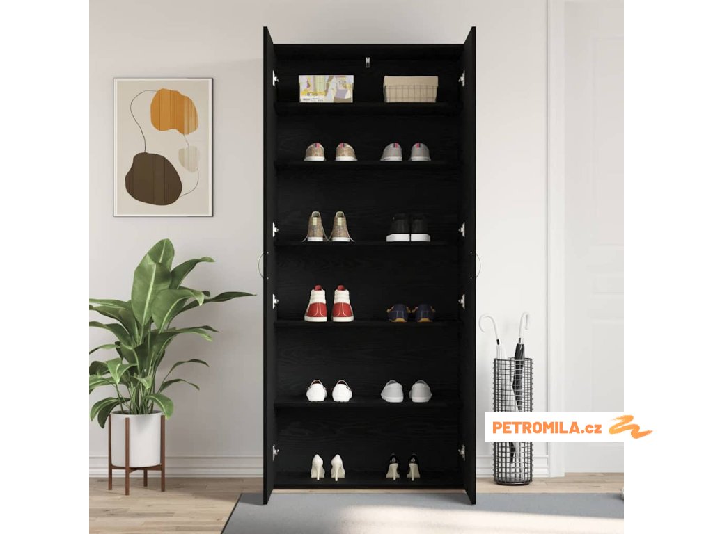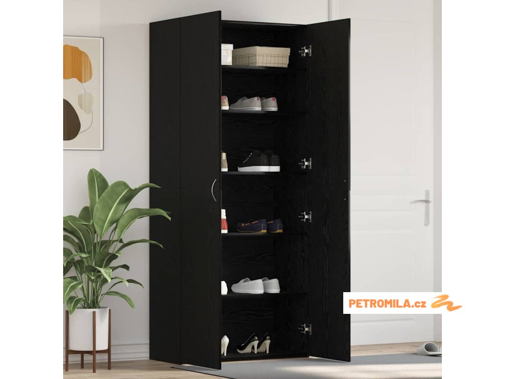 Skříň na obuv Černá 80 x 35.5 x 180 cm Kompozitní dřevo