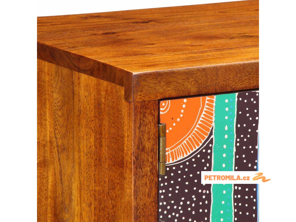 Tato bohémská servírovací skříň z přírodního dřeva je úžasná volba pro úložné prostory. Přivede tvůj obývák nebo jídelnu k životu a zároveň ti poskytne praktický prostor pro udržení pořádku. Skvělý geometrický vzor a hladký povrch nejenže pomáhají udržet věci uspořádané, ale také vypadají jako skvělé umělecké dílo, suitable for co oživí každou místnost. Je to ideální volba pro ty, kdo touží po živé a pohodové atmosféře.