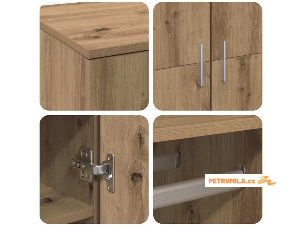 - Materiály: Tato skříň je většinou z kompozitního dřeva – je odolná a vypadá skvěle. Kompozitní dřevo je známé svou pevností a hladkým povrchem, který vydrží roky. Silná konstrukce zajišťuje, že ji bez problému používáš každý den.