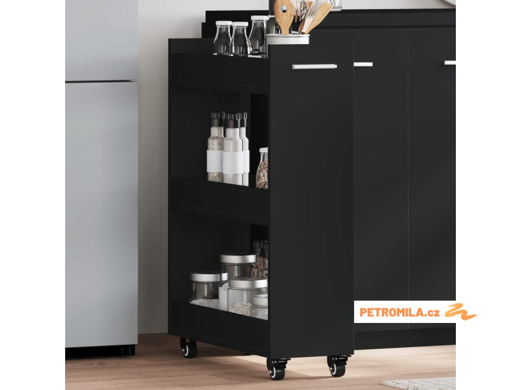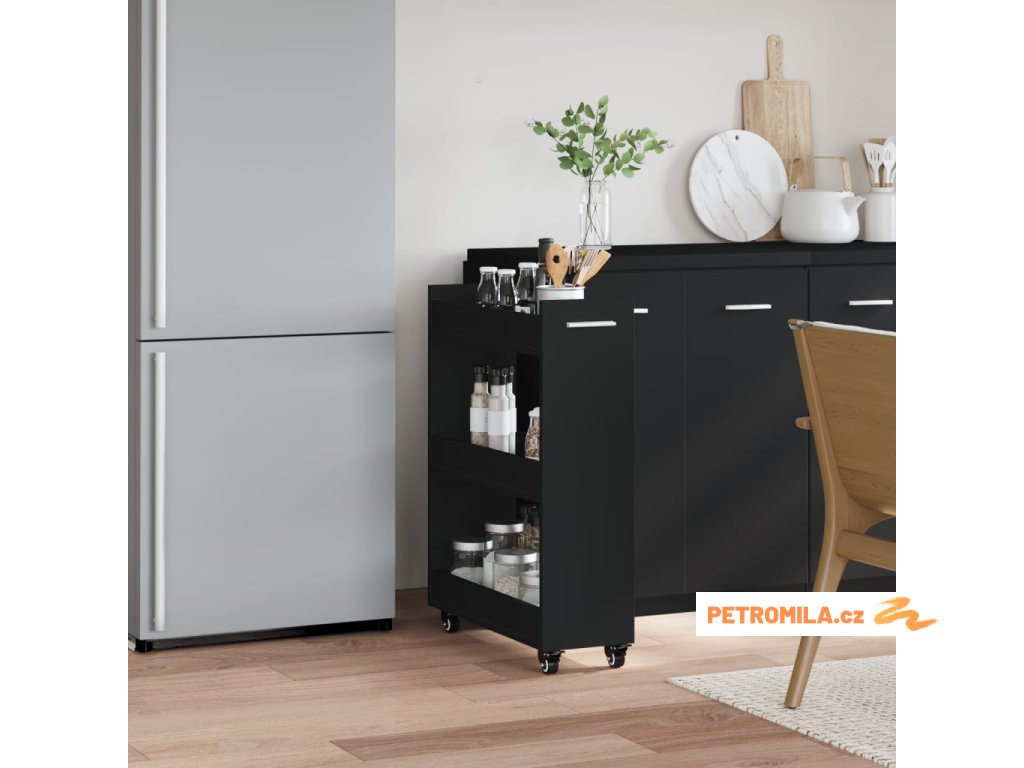 Skříňka na kolečkách černá 60 x 22 x 79 cm kompozitní dřevo