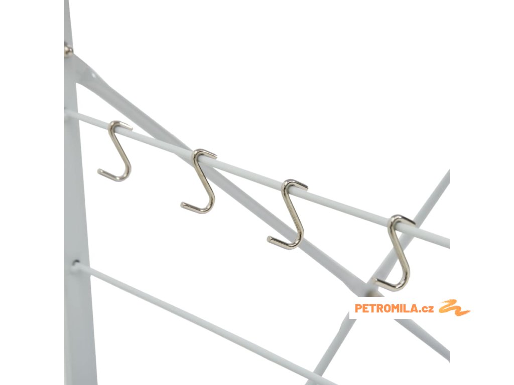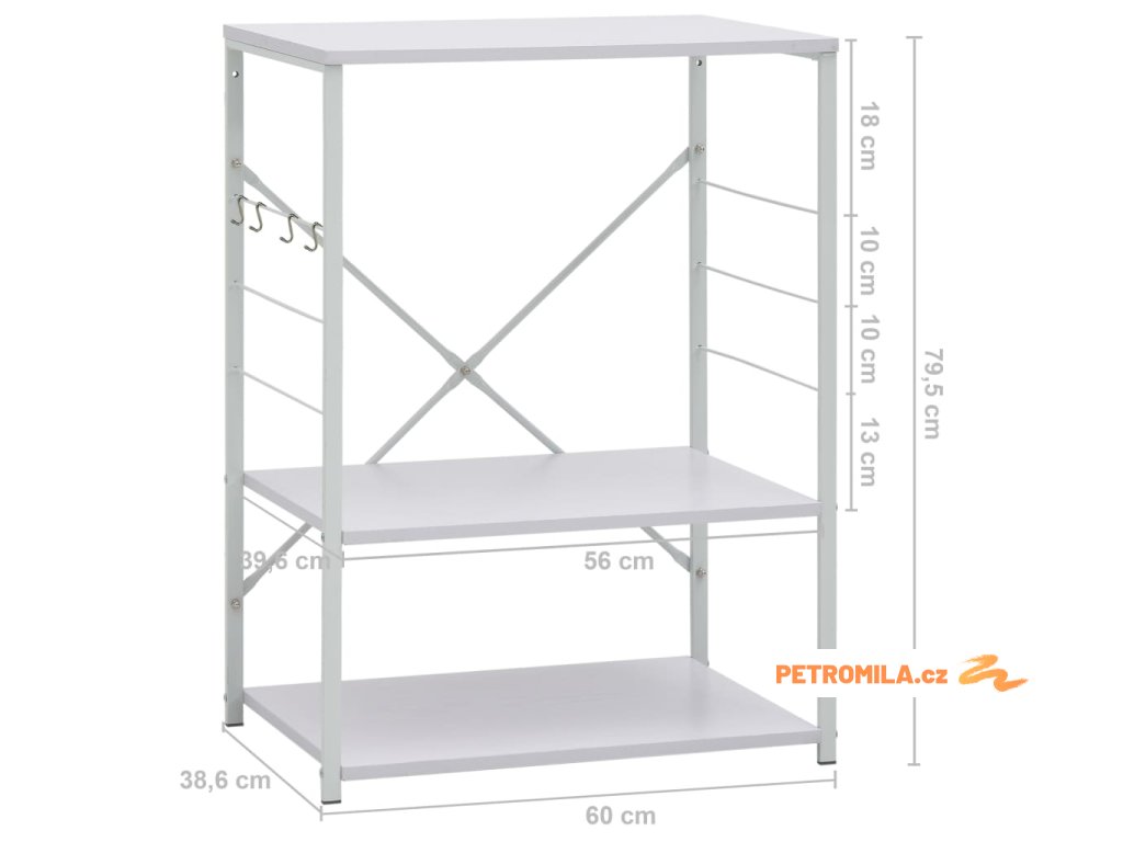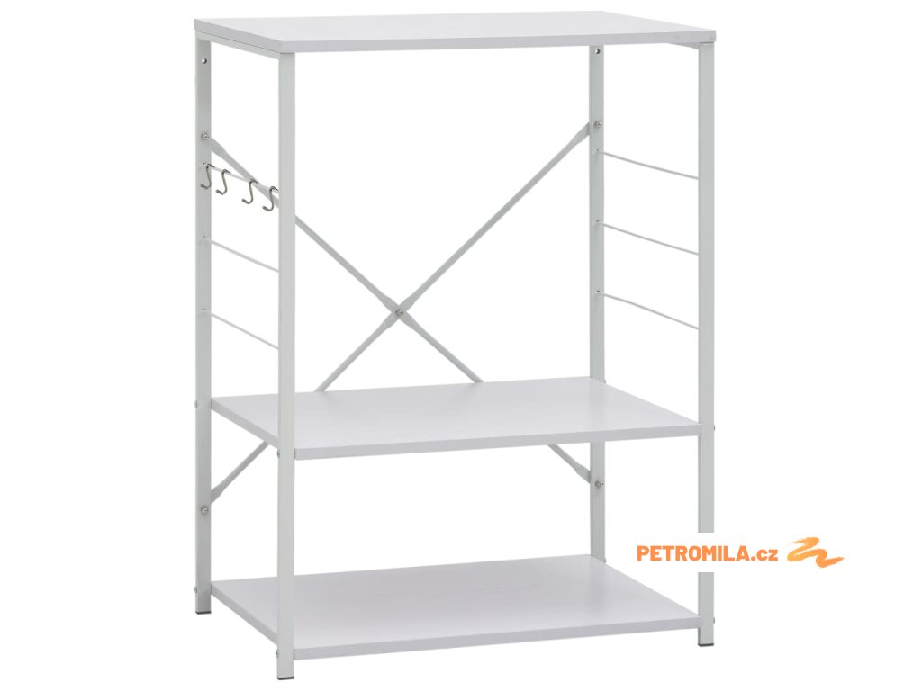 Tato kuchyňská police je zhotovená z kompozitního dřeva, takže se snadno čistí vlhkým hadříkem. Ocelová konstrukce je antikorozní a přispívá k její robustnosti. Tento regál má 3 úrovně, které vám poskytnou dostatek prostoru pro ukládání věcí. Na boku skříňky jsou háčky pro zavěšení hrnců, pánví, nádobí, kuchyňských chňapek a spoustu dalšího. Můžete ji také použít v obývacím pokoji nebo kanceláři k vystavení svých sběratelských předmětů, zarámovaných fotografií atd.