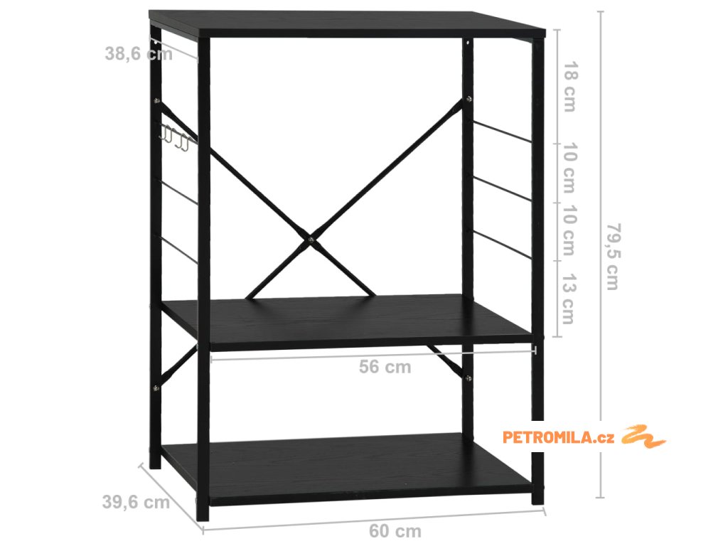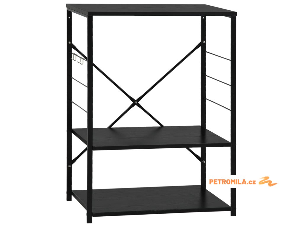 Tato kuchyňská police je zhotovená z kompozitního dřeva, takže se snadno čistí vlhkým hadříkem. Ocelová konstrukce je antikorozní a přispívá k její robustnosti. Tento regál má 3 úrovně, které vám poskytnou dostatek prostoru pro ukládání věcí. Na boku skříňky jsou háčky pro zavěšení hrnců, pánví, nádobí, kuchyňských chňapek a spoustu dalšího. Můžete ji také použít v obývacím pokoji nebo kanceláři k vystavení svých sběratelských předmětů, zarámovaných fotografií atd.